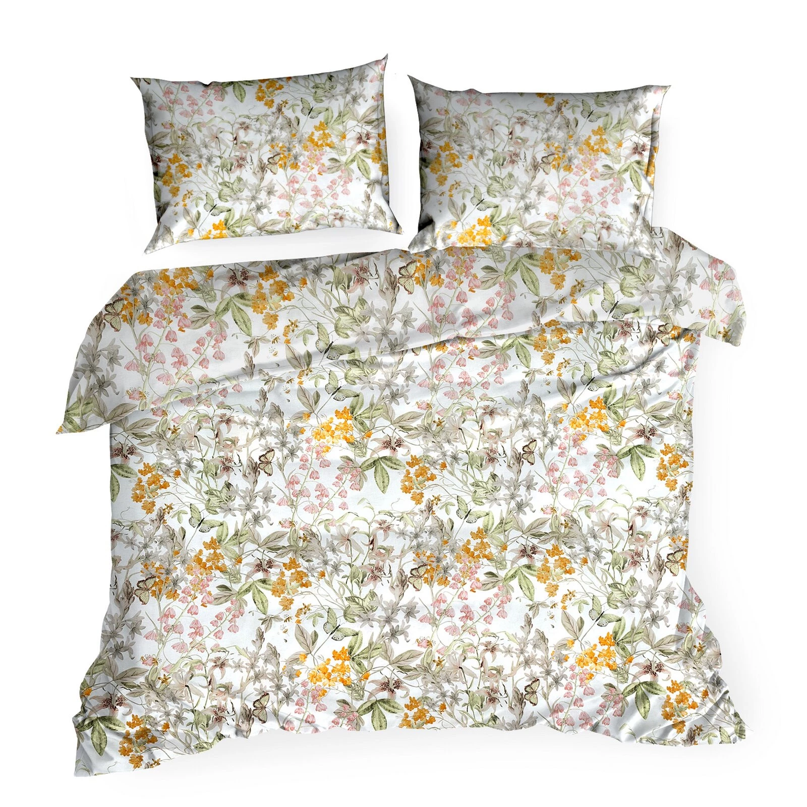 Pościel bawełniana PAULA biała z wzorem kwiatów polnych 140X200 70X80/X1
