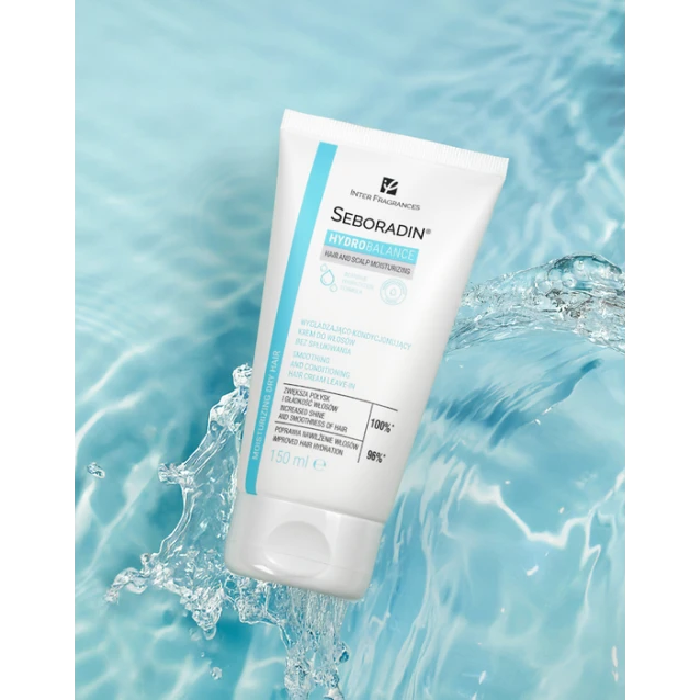 Krem do włosów HYDRO BALANCE to intensywna pielęgnacja dla włosów potrzebujących nawilżenia, odżywienia i regeneracji. Produkt jest przeznaczony do każdego rodzaju włosów, szczególnie przesuszonych. Bezsilikonowa formuła pomaga poprawić wygląd i kondycję włosów, ułatwia rozczesywanie oraz wspiera gładkość i blask bez obciążania.