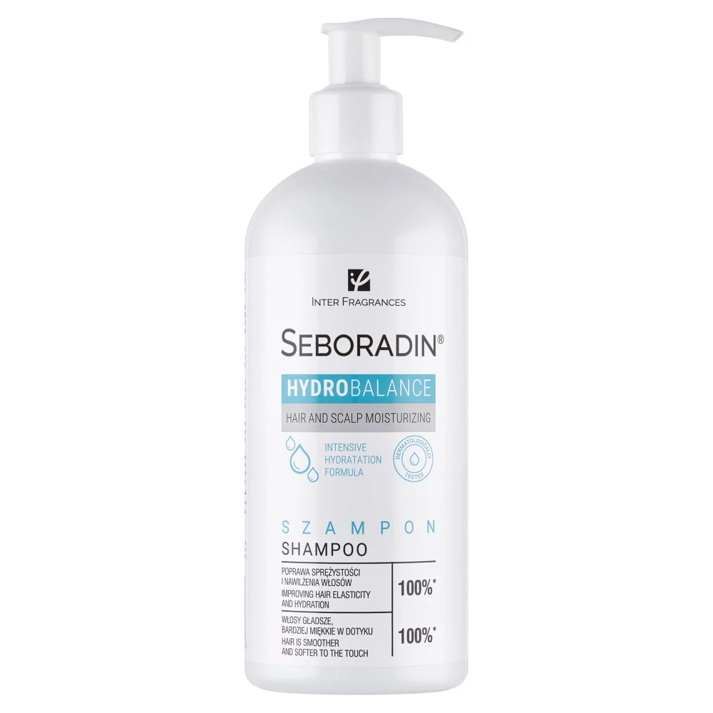 - Nawilżający szampon Seboradin Hydro Balance 400 ml z aloesem i wodą lawendową. Szampon do pielęgnacji każdego rodzaju, zmniejszający przesuszenie oraz puszenie się włosów.