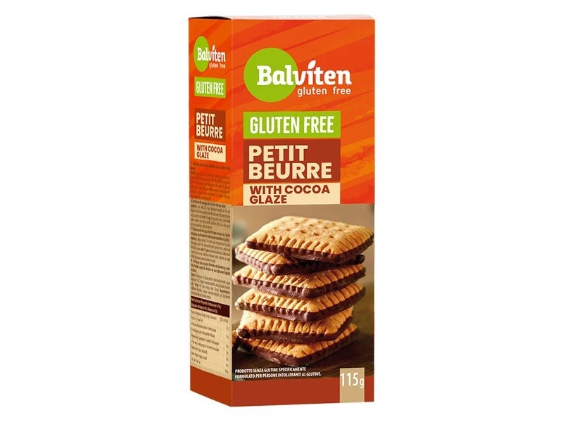 HERBATNIKI PETIT BEURRE Z DODATKIEM POLEWY KAKAOWEJ BEZGLUTENOWE 115 g - BALVITEN
