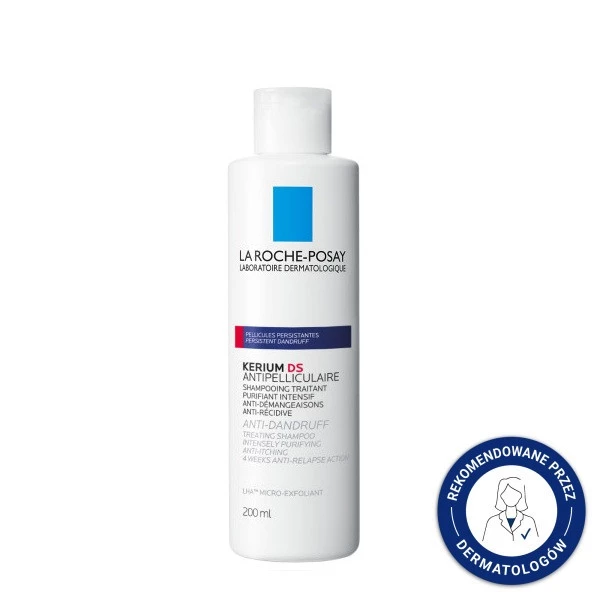 - Kerium DS - przeciwłupieżowy szampon od La Roche-Posay z zawartością lipohydrokwasu (LHA) o działaniu mikrozłudzczającym