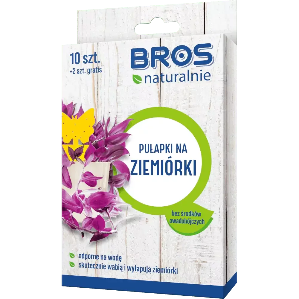 Żółte pułapki lepowe BROS Naturalnie to skuteczny i estetyczny sposób na zwalczanie dorosłych uskrzydlonych ziemiórek. Dzięki specjalnej barwie i klejowi przyciągają owady, ograniczając ich rozmnażanie i chroniąc rośliny doniczkowe.