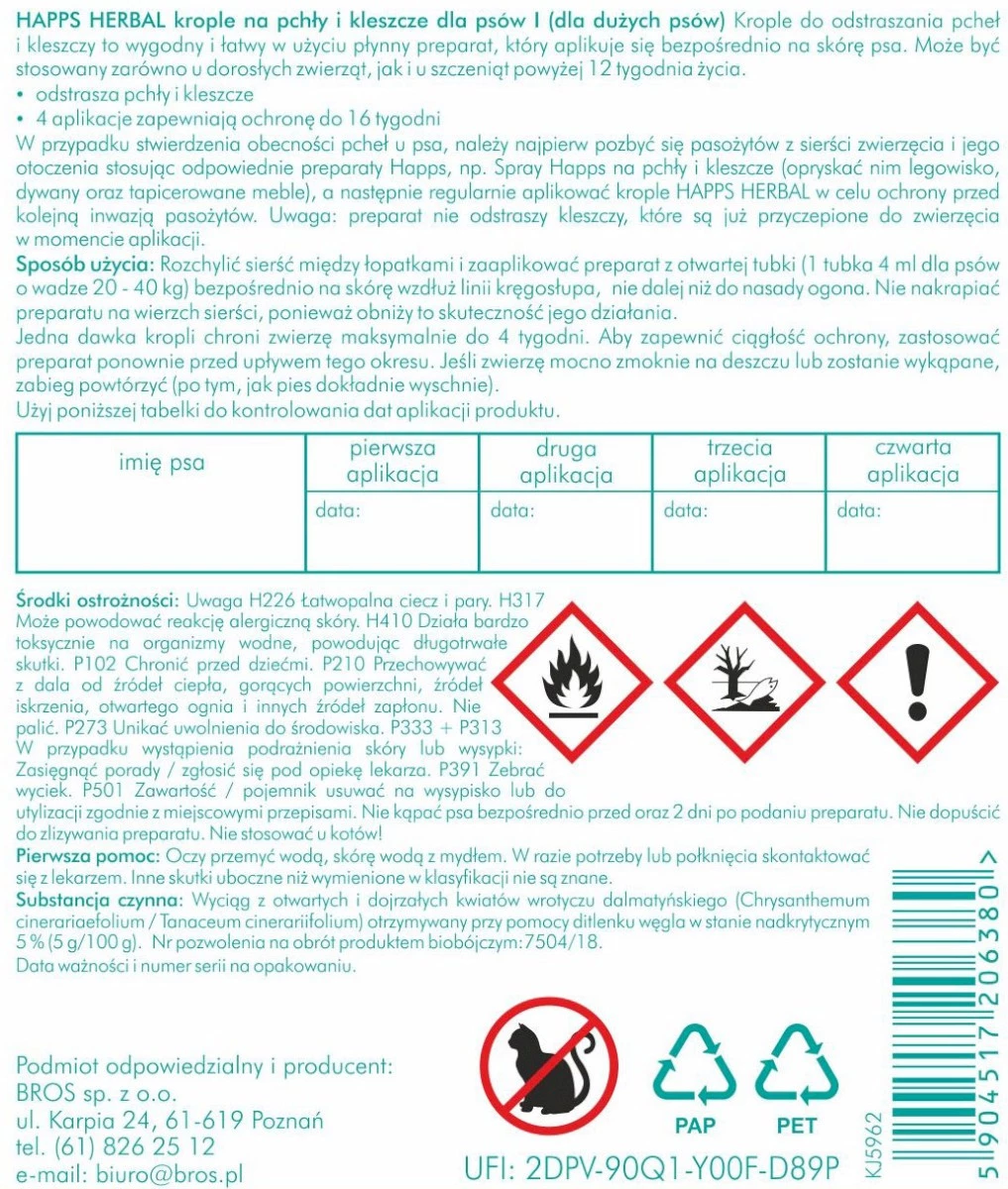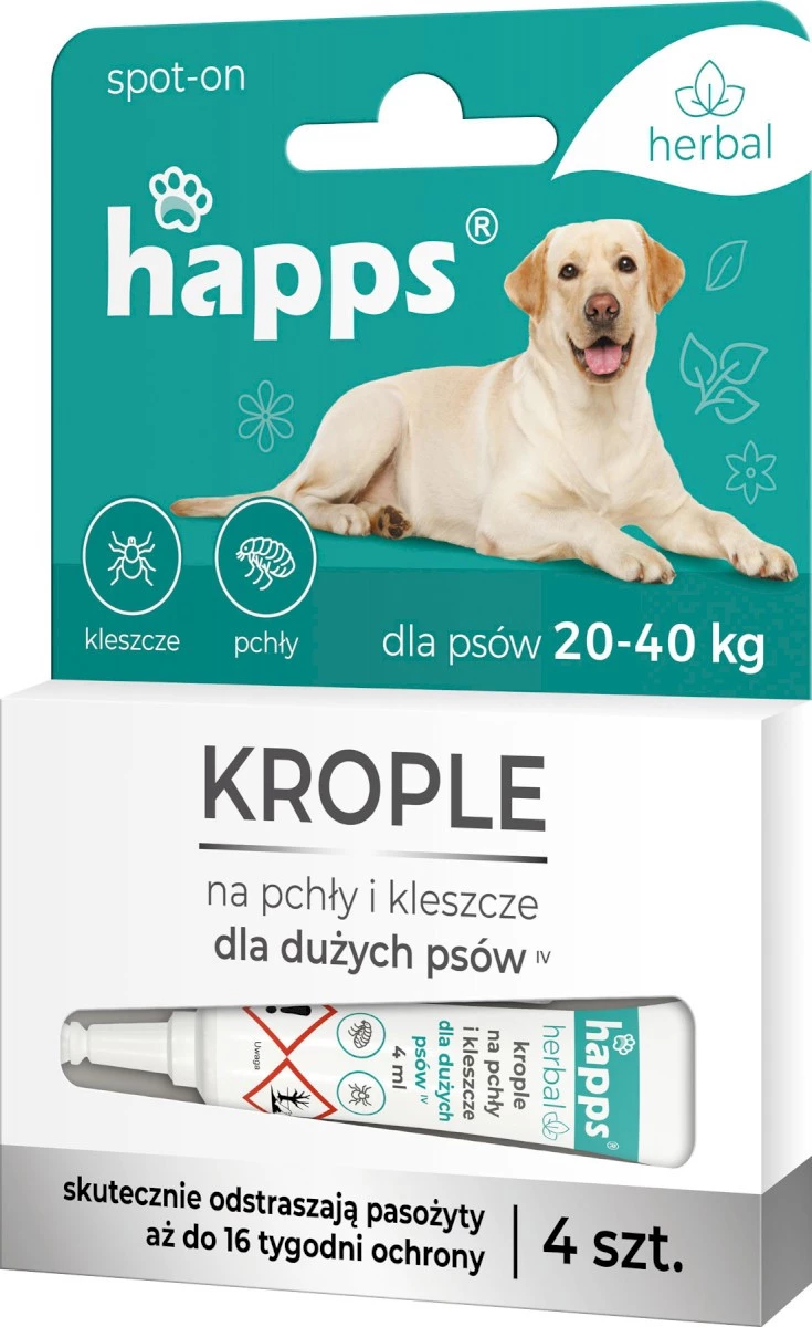 HAPPS Herbal - krople na pchły i kleszcze dla dużych psów 20 - 40kg