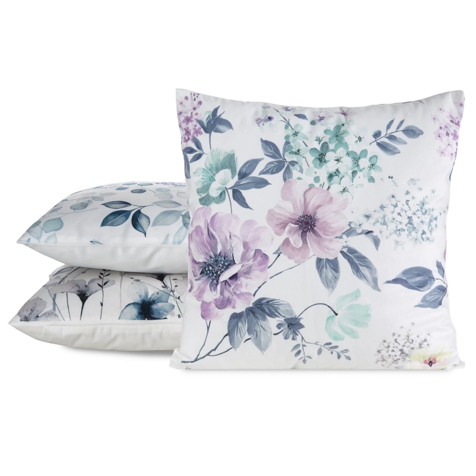 - Poszewka wykonana z tkaniny typu mink, z kwiatowym nadrukiem szerokość: 45 cm, długość: 45 cm, kolor: biały, Gramatura: 200 GSM, Skład: 100% poliester