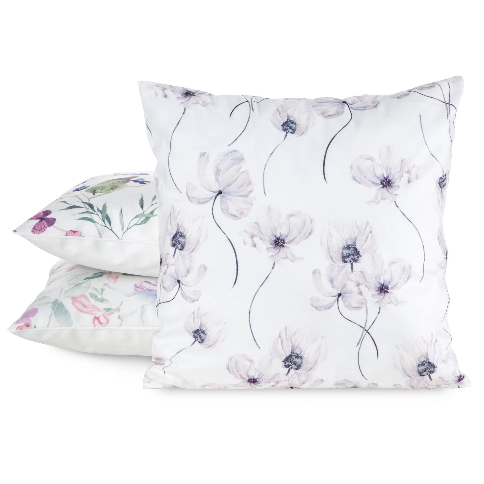- Poszewka wykonana z tkaniny typu mink, z kwiatowym nadrukiem szerokość: 45 cm, długość: 45 cm, kolor: biały, Gramatura: 200 GSM, Skład: 100% poliester
