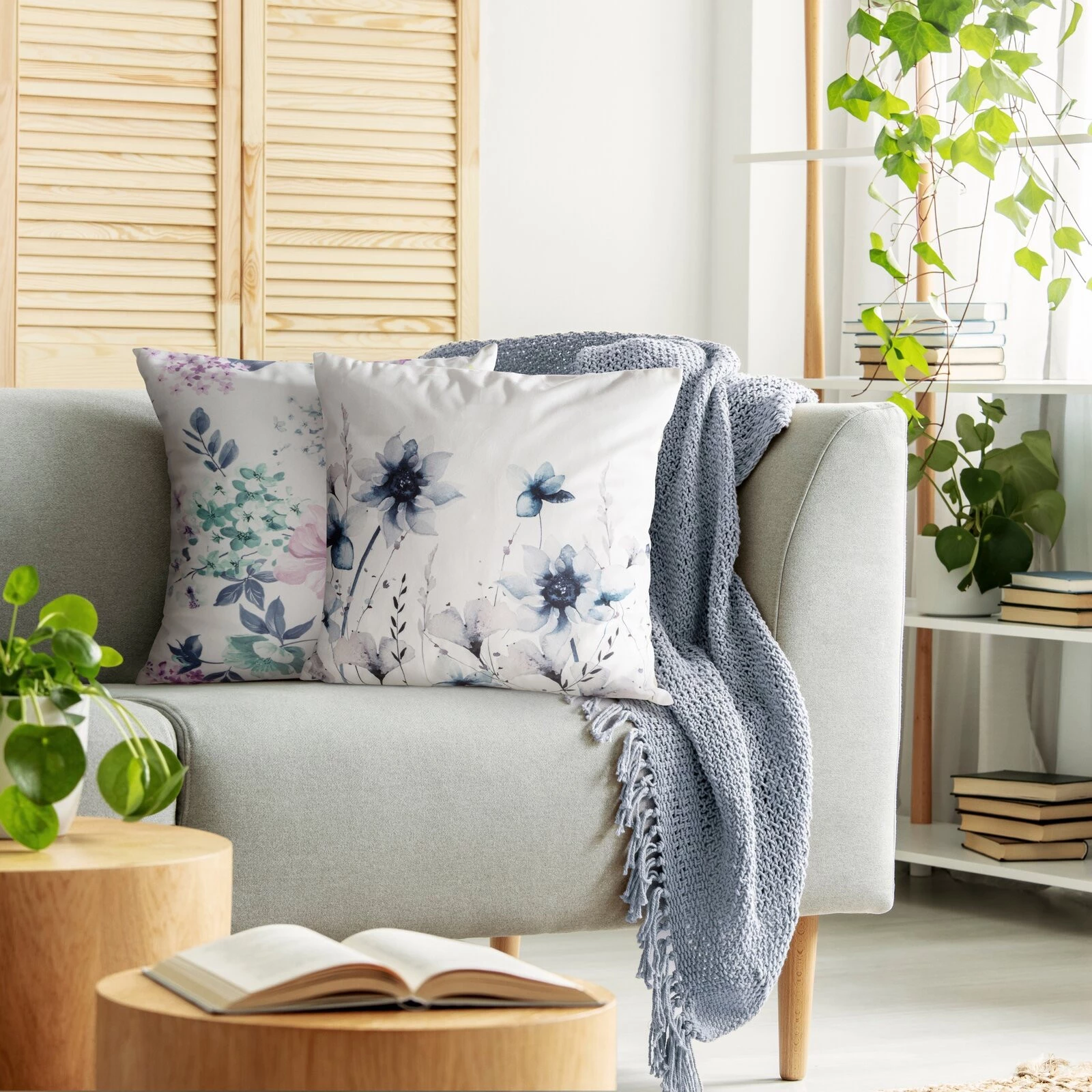 - Poszewka wykonana z tkaniny typu mink, z kwiatowym nadrukiem szerokość: 45 cm, długość: 45 cm, kolor: biały, Gramatura: 200 GSM, Skład: 100% poliester