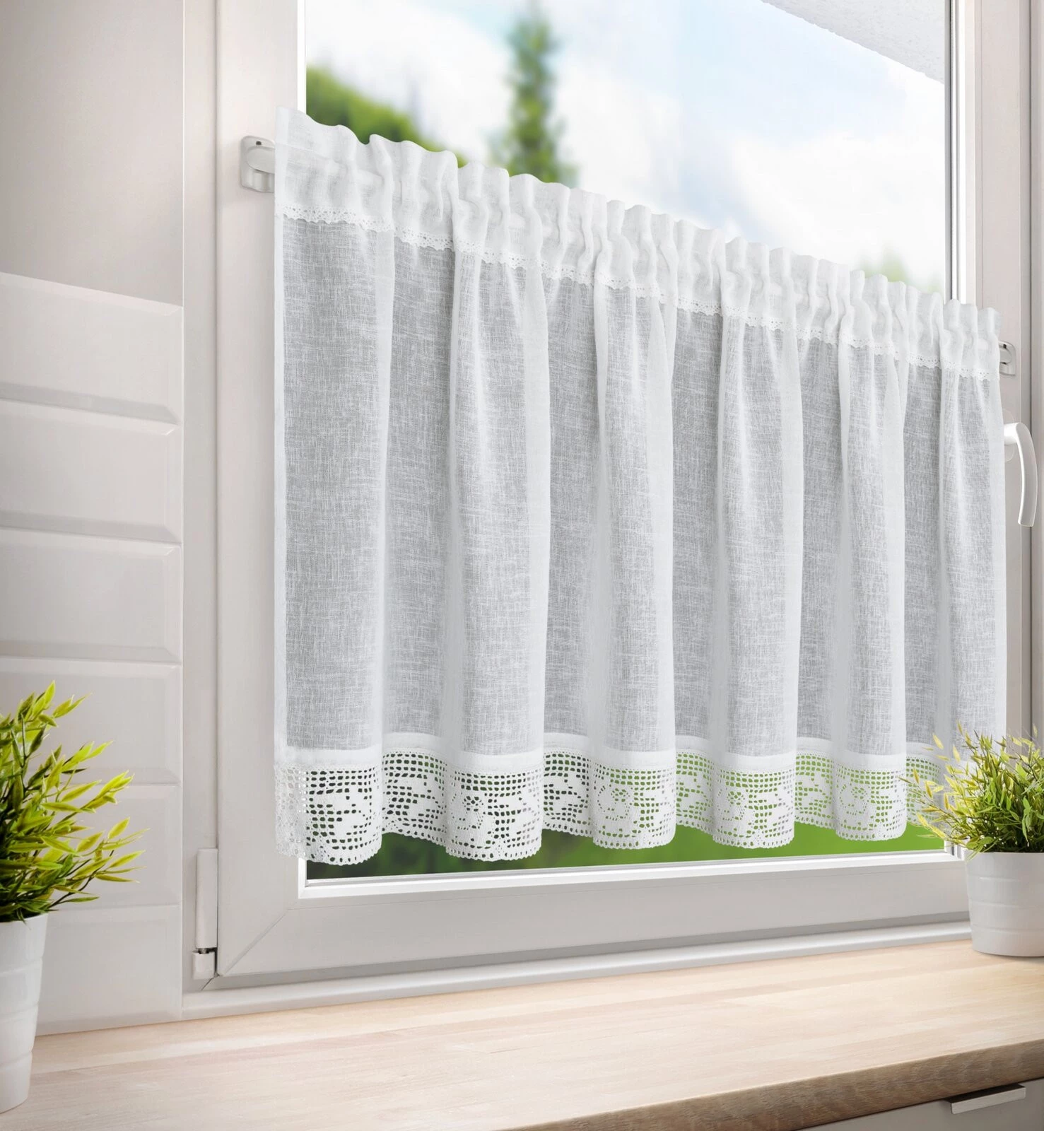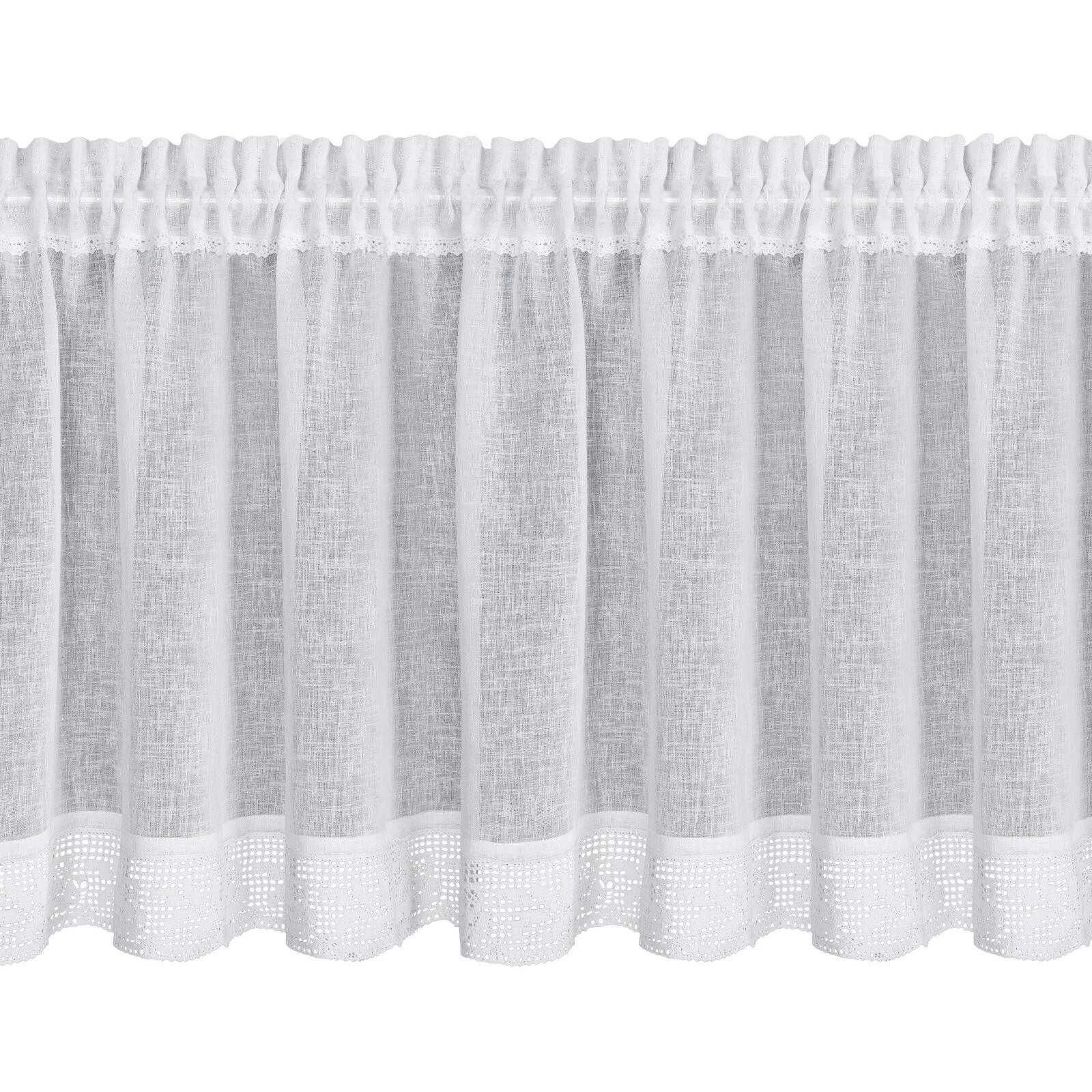 - Zazdrostka zdobiona koronką szerokość: 150 cm, długość: 60 cm, kolor: biały, Gramatura: 110 GSM, Skład: 100% poliester