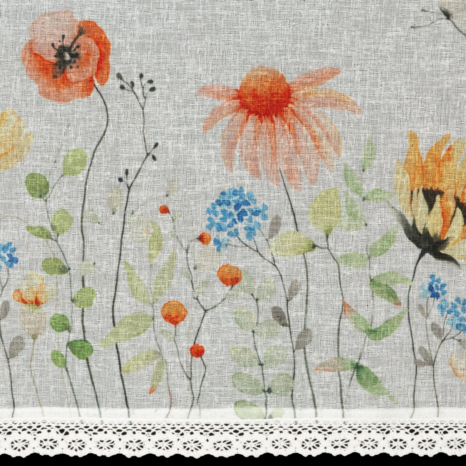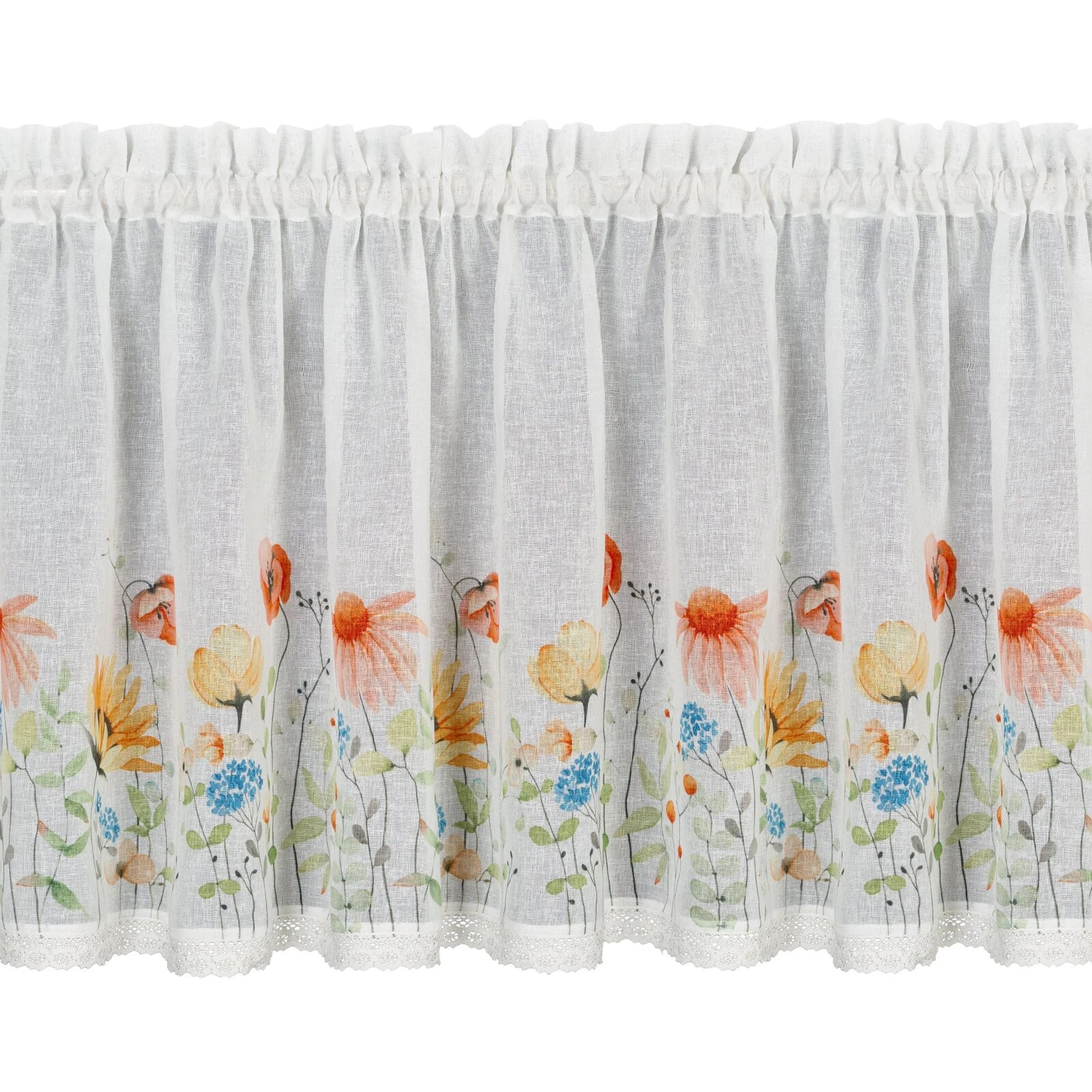 - Zazdrostka z nadrukiem zdobiona koronką szerokość: 150 cm, długość: 60 cm, kolor: biały, Gramatura: 110 GSM, Skład: 100% poliester
