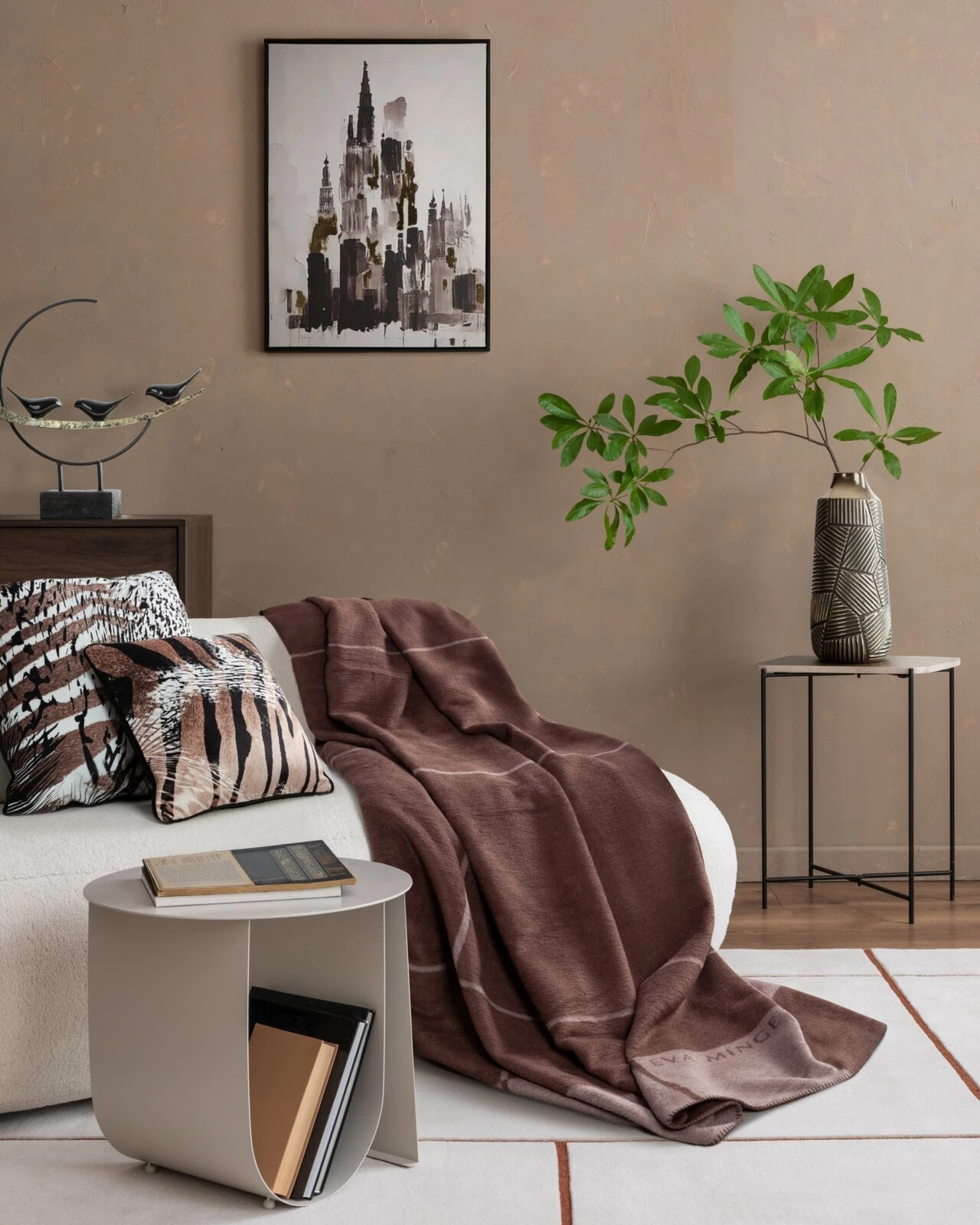 - Koc bawełniano akrylowy z kolekcji eva minge szerokość: 220 cm, długość: 240 cm, kolor: brązowy, Gramatura: 450 GSM, Skład: 58% bawełna, 32% akryl, 10% poliester