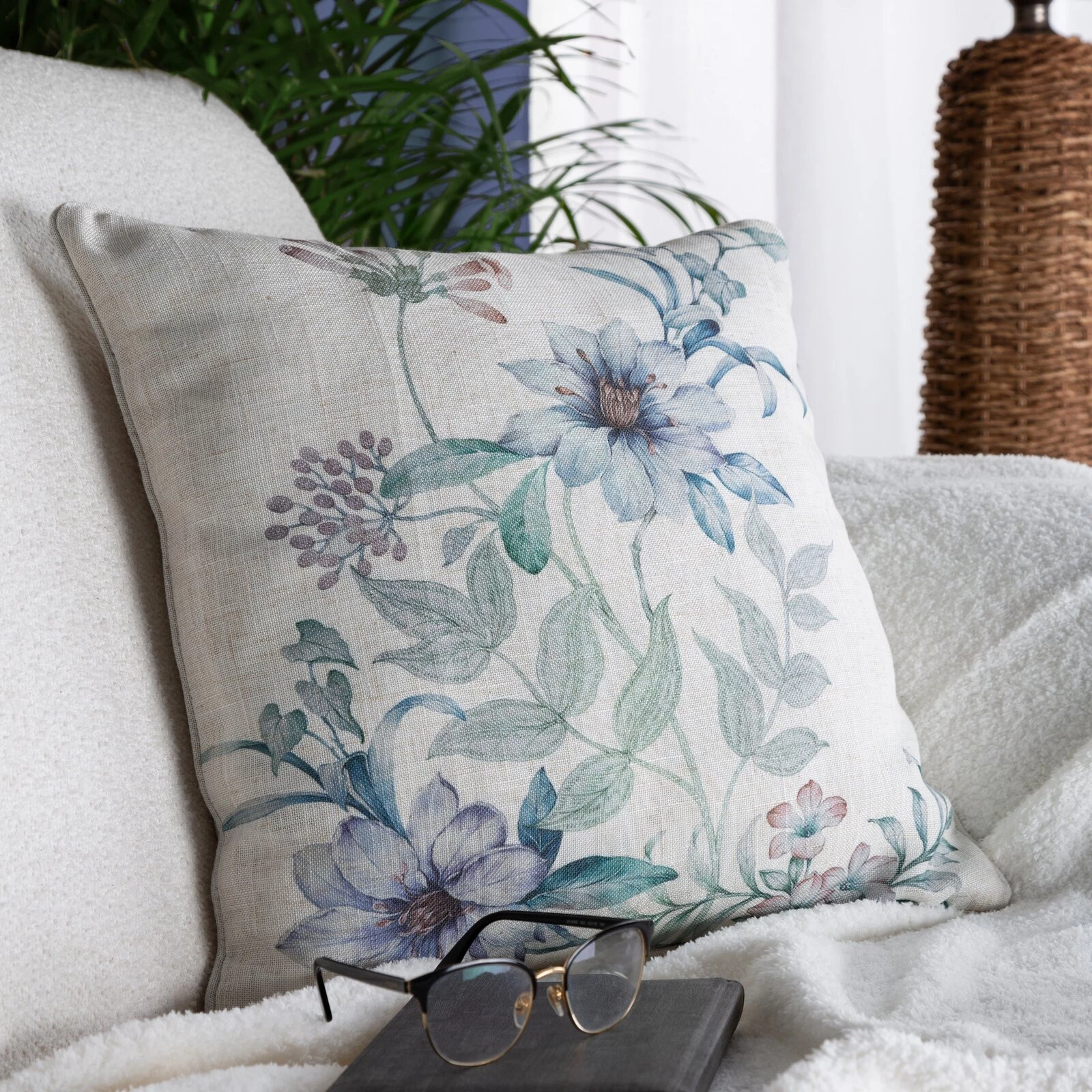 - Poszewka wykonana z tkaniny imitującej len, obszyta ozdobną lamówką szerokość: 45 cm, długość: 45 cm, kolor: naturalny, Skład: 100% poliester