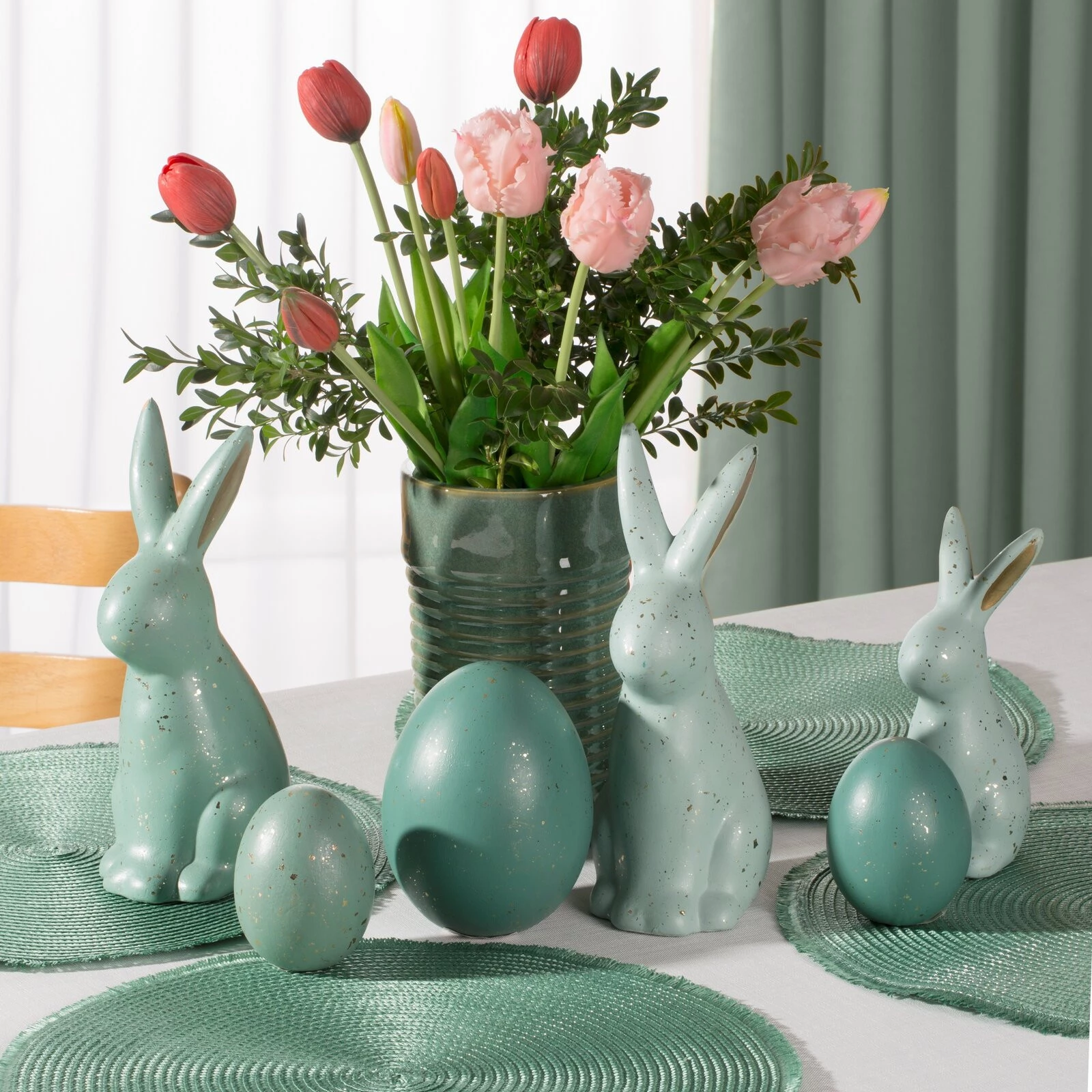 Ozdoba Wielkanocna, Figurka ceramiczna, kolor zielony, rozmiar 9 x 7 x 18 cm