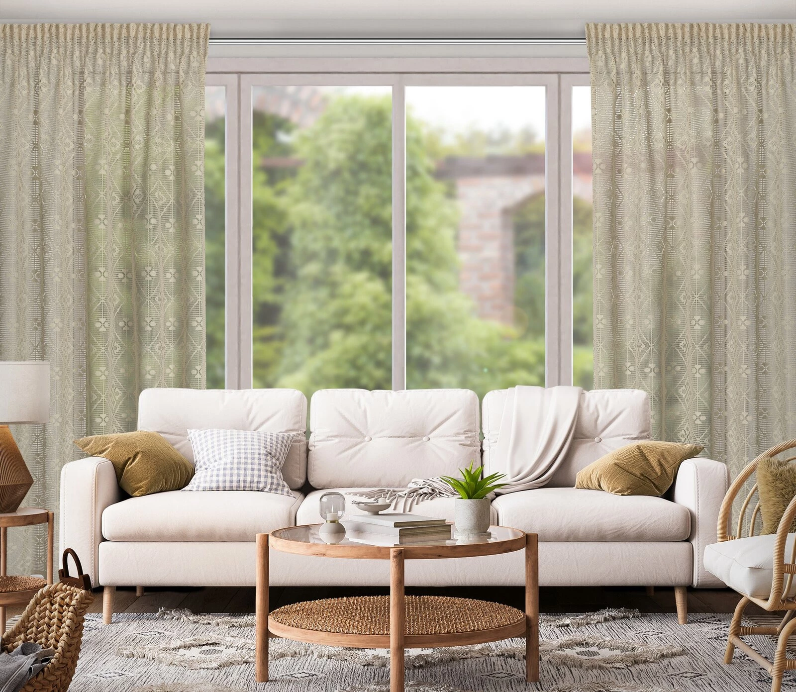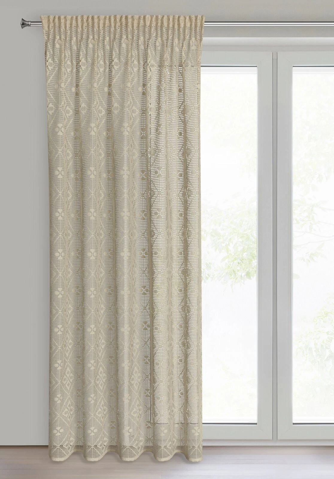 Zasłona gotowa ażurowa z bawełny szerokość: 140 cm, długość: 270 cm, kolor: naturalny, Gramatura: 160 GSM, Skład: 100% bawełna