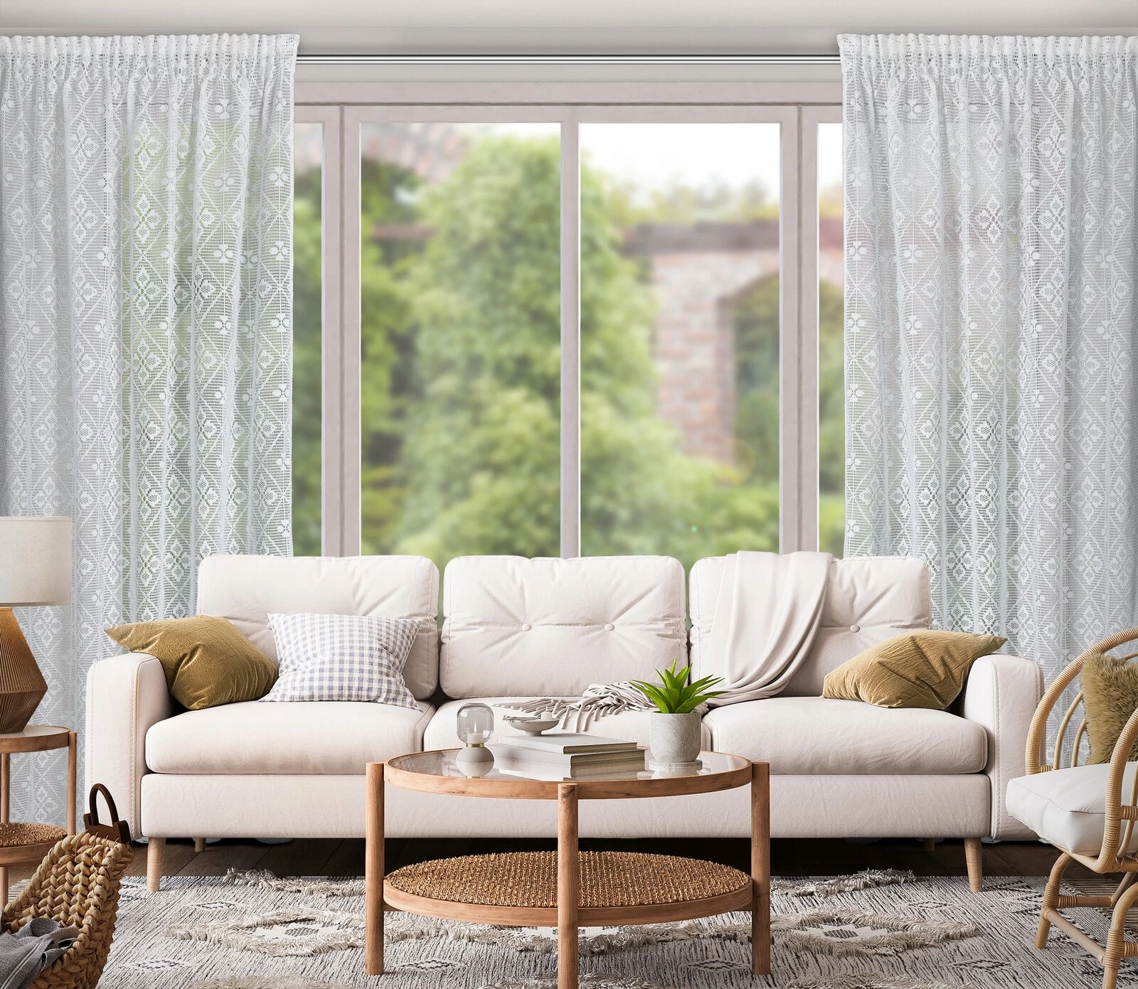 - Zasłona gotowa ażurowa z bawełny szerokość: 140 cm, długość: 270 cm, kolor: kremowy, Gramatura: 160 GSM, Skład: 100% bawełna