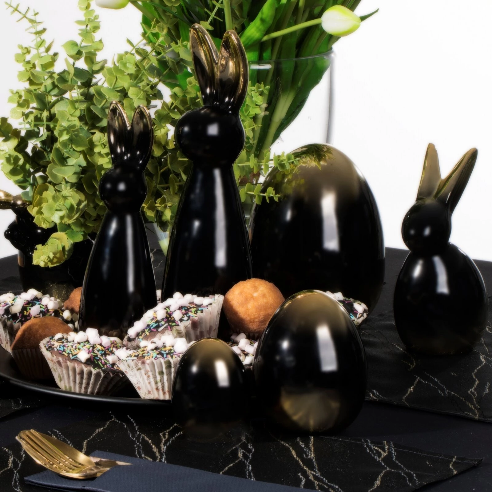 Ozdoba Wielkanocna, Figurka ceramiczna, kolor czarny, rozmiar 6 x 8 x 6 cm