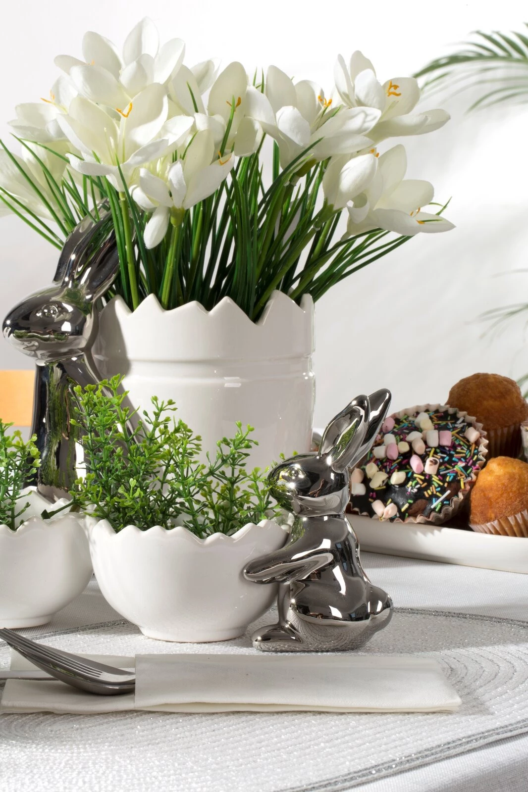 Ozdoba Wielkanocna, Misa ceramiczna, kolor biały, rozmiar 21 x 13 x 16 cm