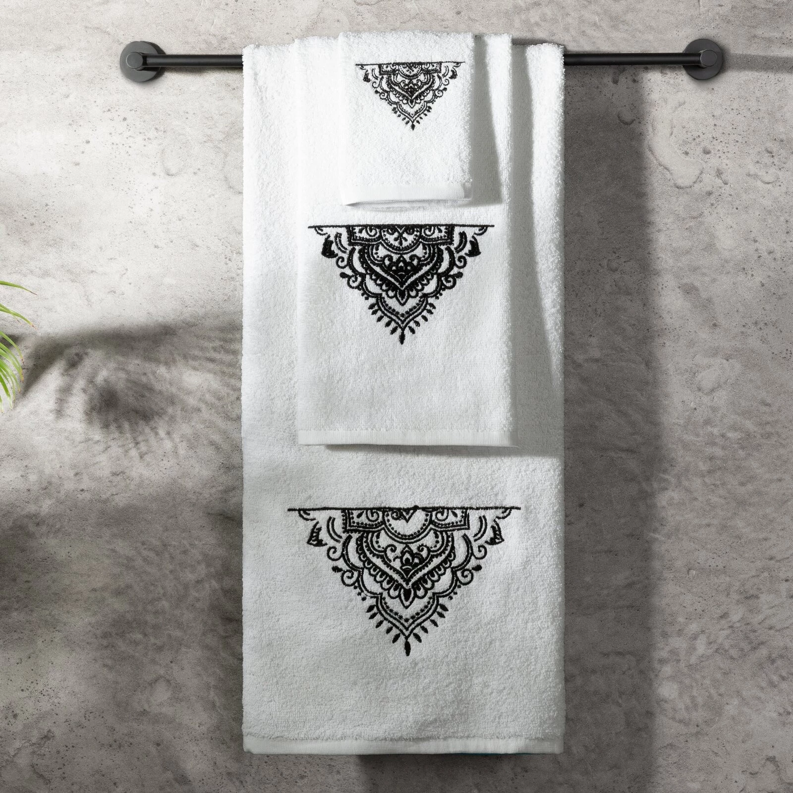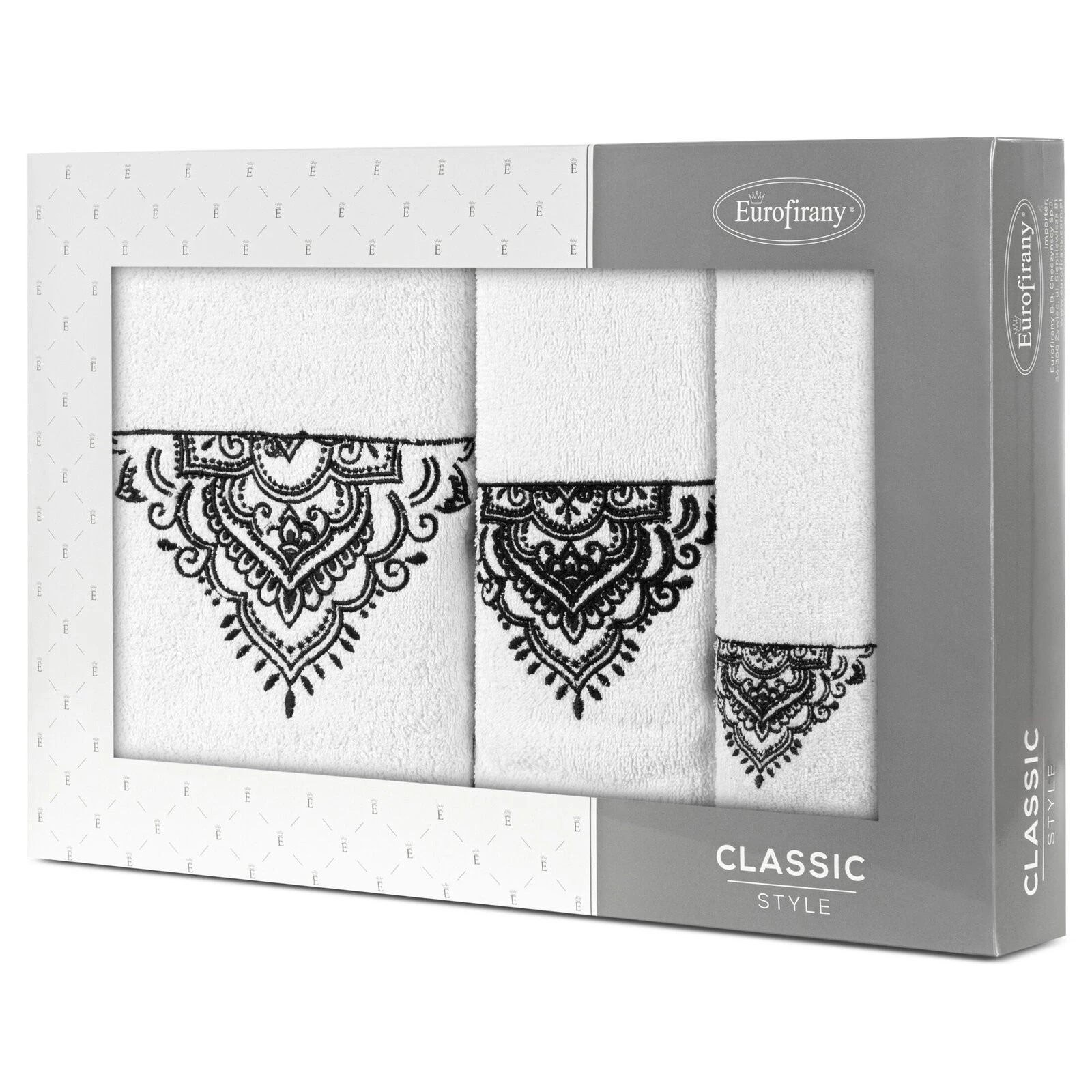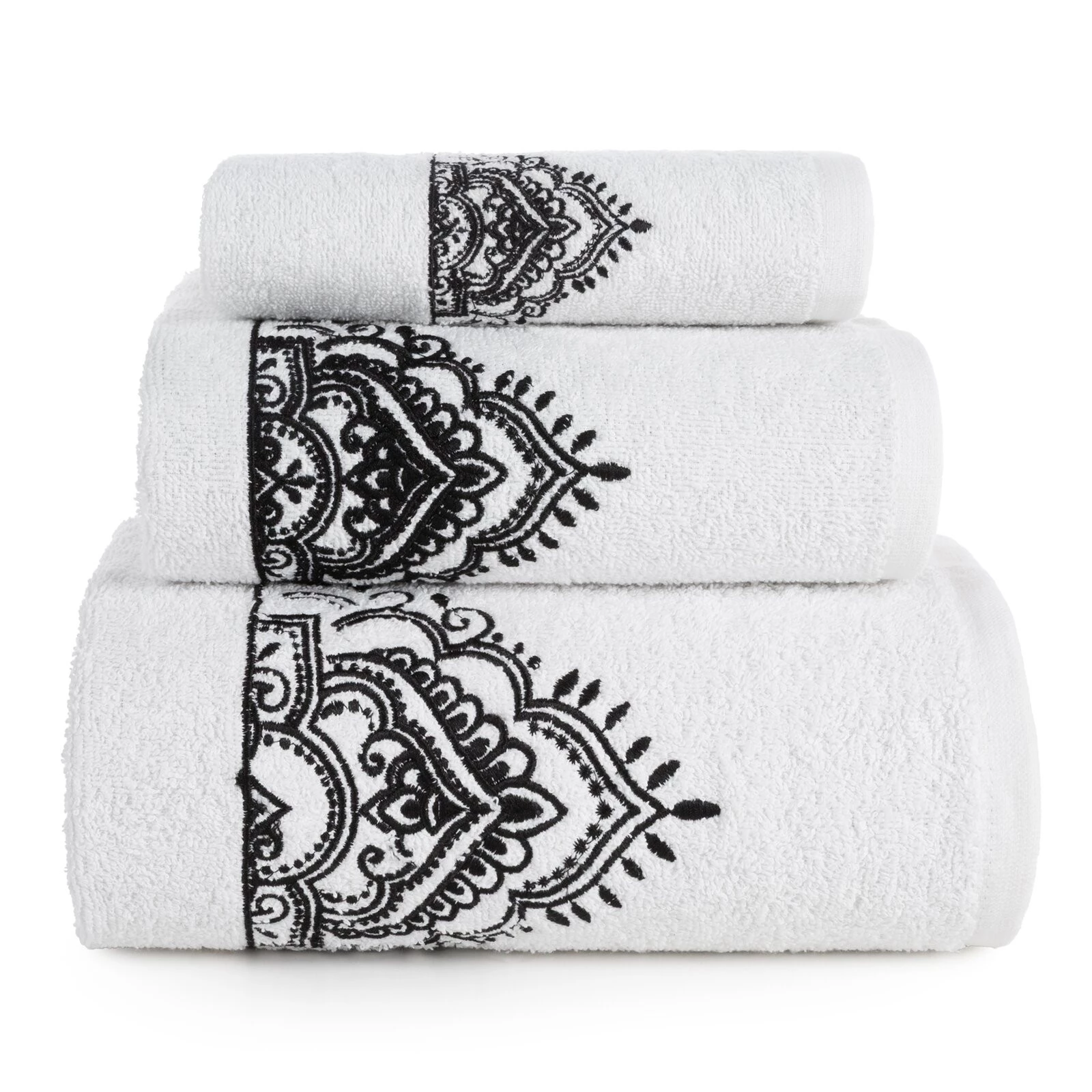- Komplet ręczników z haftem szerokość: 56 cm, długość: 36 cm, kolor: biały, Gramatura: 400 GSM, Skład: 100% bawełna
