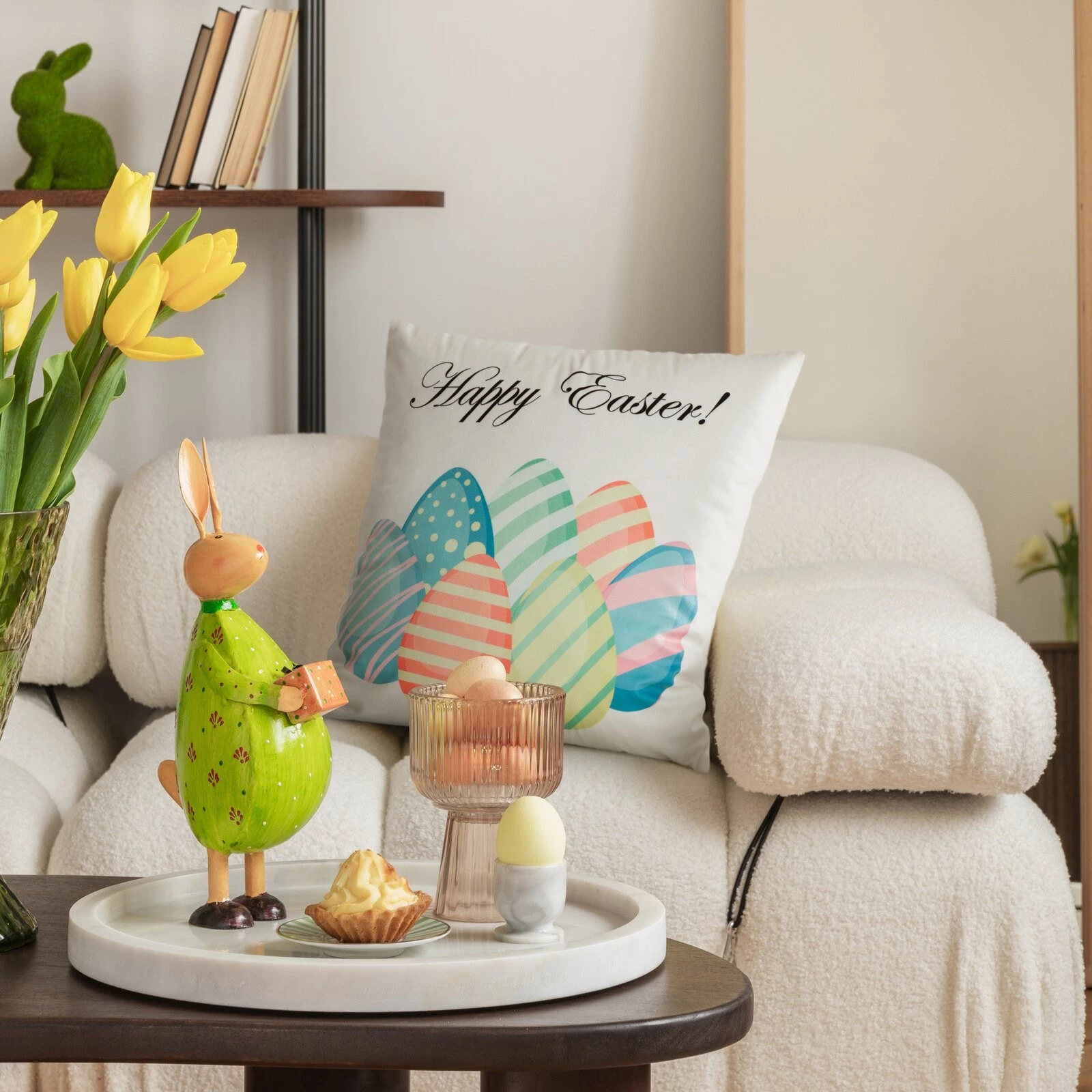 - Poszewka wykonana z weluru z ozdobnym nadrukiem wielkanocnym szerokość: 45 cm, długość: 45 cm, kolor: biały, Gramatura: 140 GSM, Skład: 100% poliester