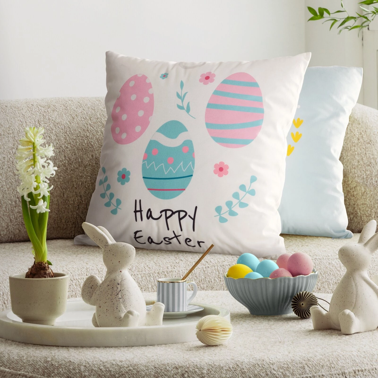 - Poszewka wykonana z weluru z ozdobnym nadrukiem wielkanocnym szerokość: 45 cm, długość: 45 cm, kolor: biały, Gramatura: 140 GSM, Skład: 100% poliester