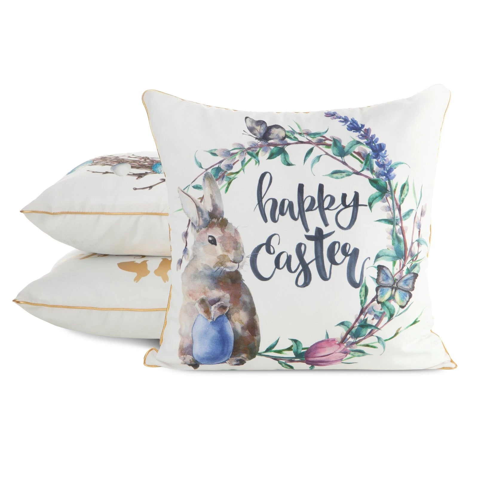 - Poszewka dekoracyjna z nadrukiem i ozdobną lamówką szerokość: 45 cm, długość: 45 cm, kolor: biały, Gramatura: 140 GSM, Skład: 100% poliester