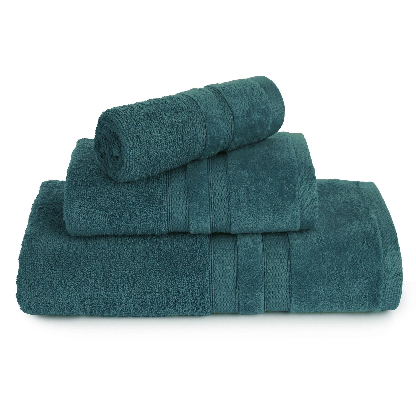 - Elegancki ręcznik z delikatnej i bardzo chłonnej tkaniny frotte, jednokolorowy. Krawędzie zdobione subtelną bordiurą z welwetu. Łatwy w praniu, trwałe kolory. szerokość: 30 cm, długość: 50 cm, kolor: ciemnoturkusowy, Gramatura: 500 GSM, Skład: 100% bawełn