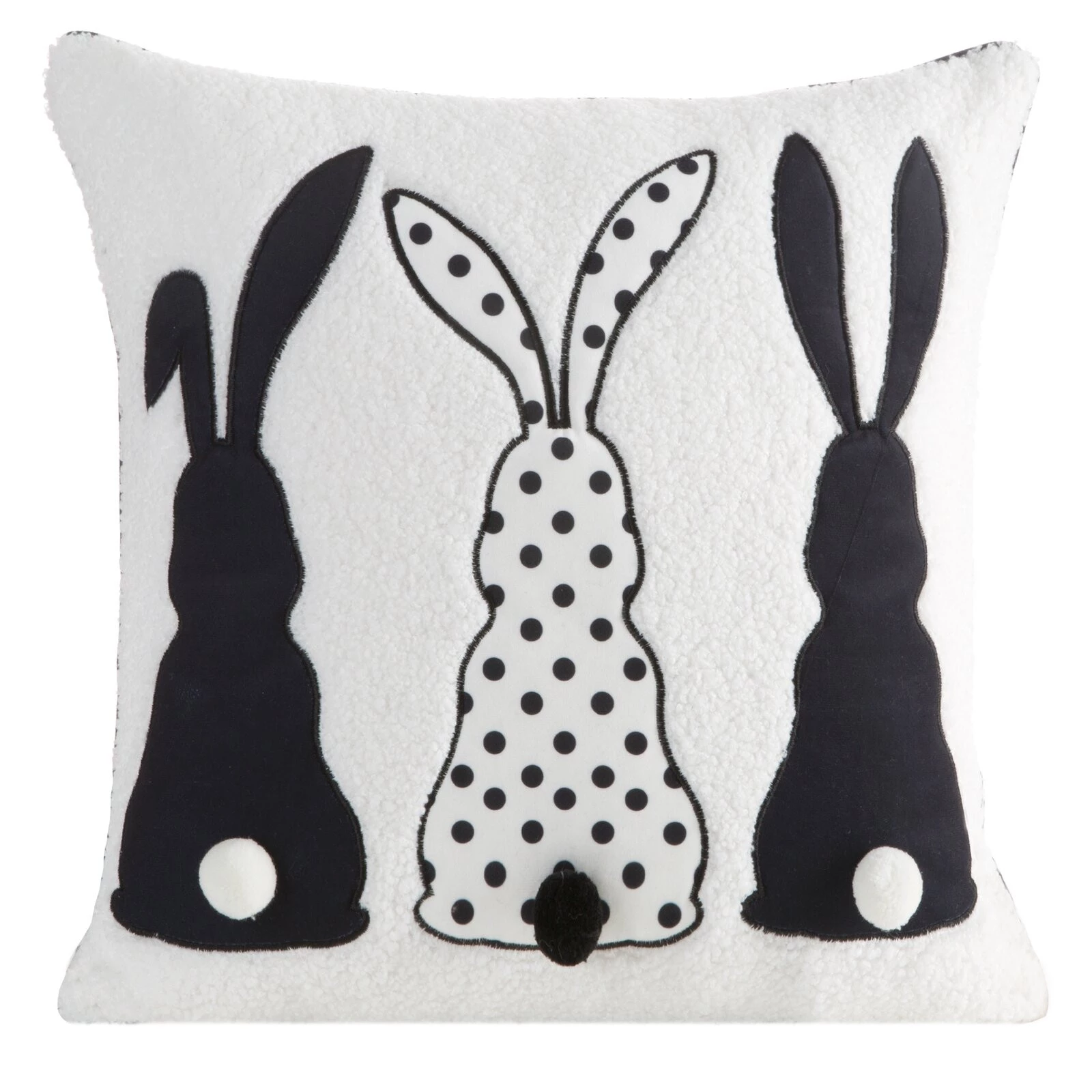 - Wielkanocna poszewka dekoracyjna imitująca buklę z ozdobnymi pomponami szerokość: 45 cm, długość: 45 cm, kolor: czarny, Gramatura: 140 GSM, Skład: 100% poliester