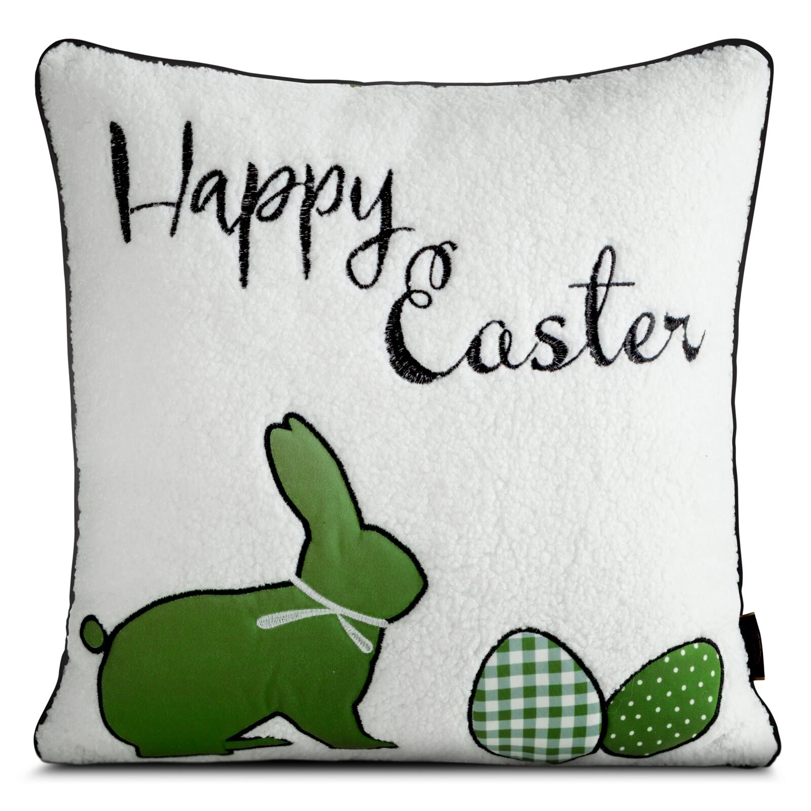- Wielkanocna poszewka dekoracyjna imitująca buklę szerokość: 45 cm, długość: 45 cm, kolor: zielony, Gramatura: 140 GSM, Skład: 100% poliester