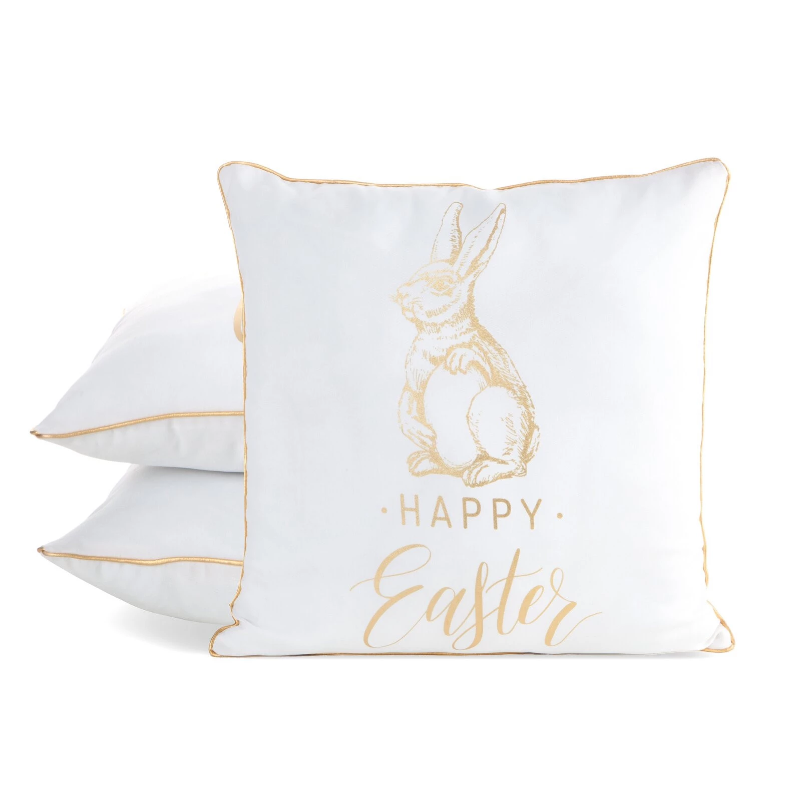 - Poszewka dekoracyjna ze złotym nadrukiem i ozdobną lamówką szerokość: 45 cm, długość: 45 cm, kolor: biały, Gramatura: 140 GSM, Skład: 100% poliester
