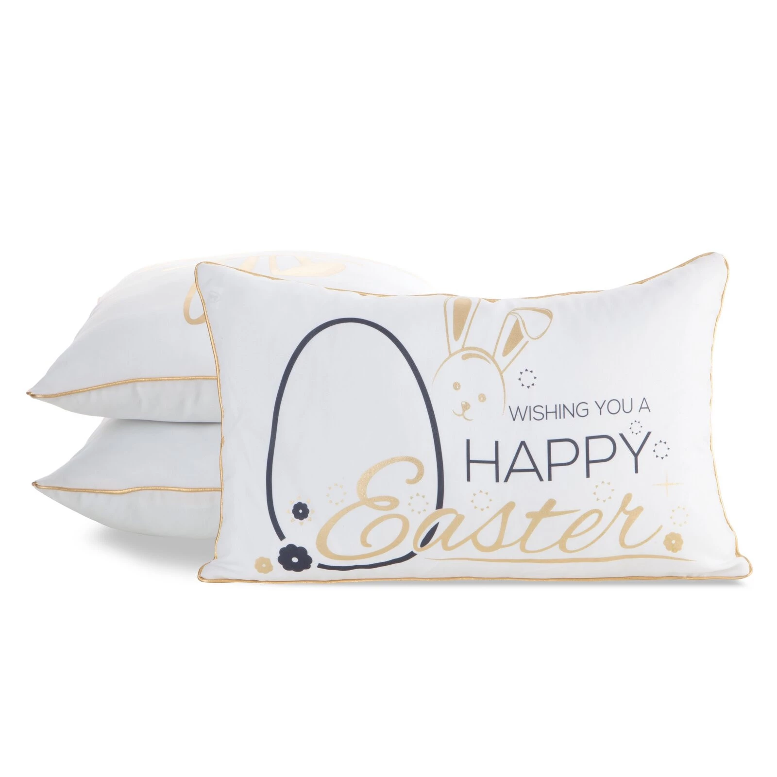 - Poszewka dekoracyjna ze złotym nadrukiem i ozdobną lamówką szerokość: 30 cm, długość: 50 cm, kolor: biały, Gramatura: 140 GSM, Skład: 100% poliester