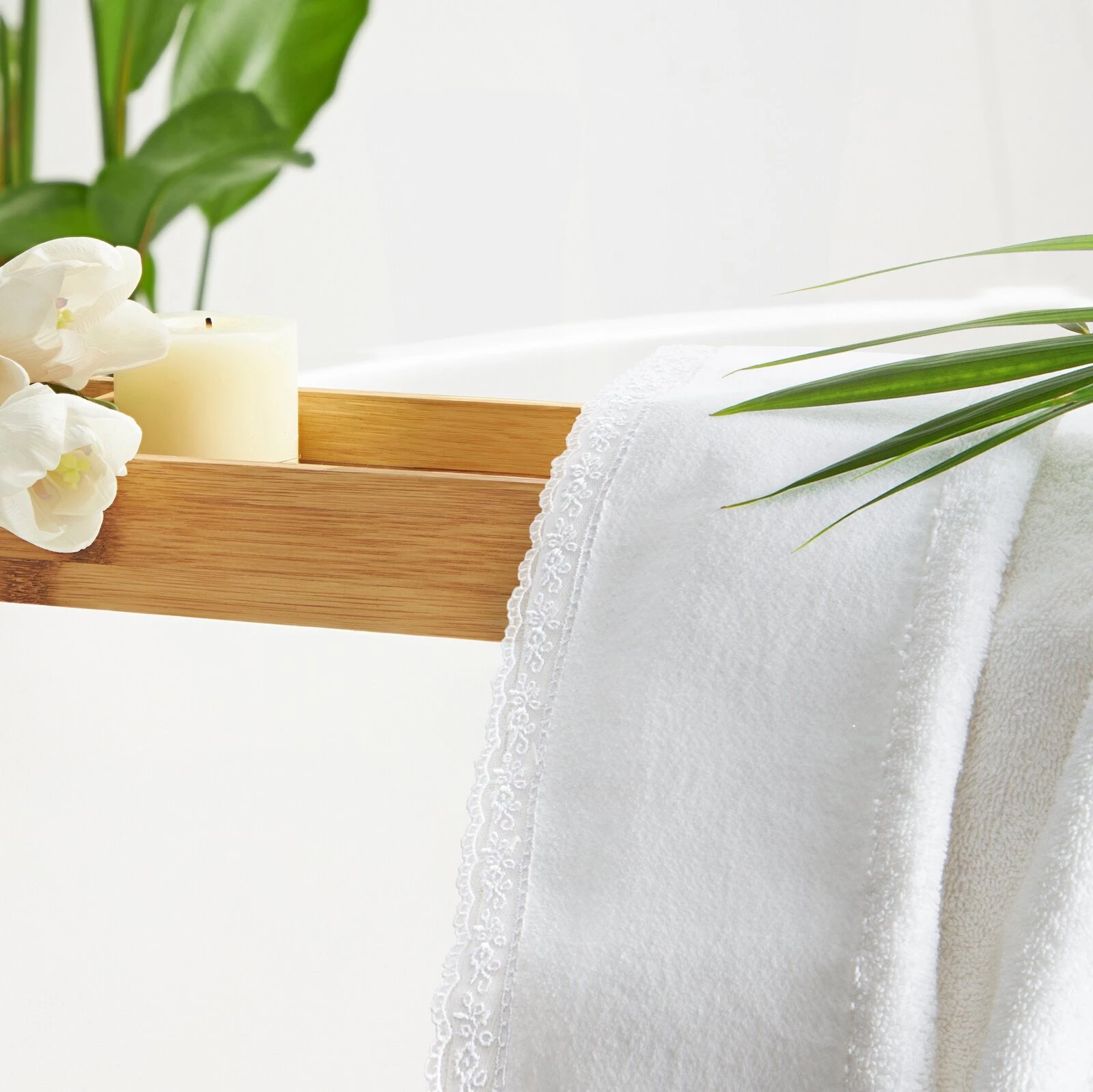 - Piękny ręcznik kąpielowy z miękkiej i chłonnej bawełny frotte zdobiony na bordiurze aplikacją w formie serduszek wypełnionych różyczkami. Doskonały na prezent. szerokość: 30 cm, długość: 50 cm, kolor: biały, Gramatura: 500 GSM, Skład: 100% bawełna; część