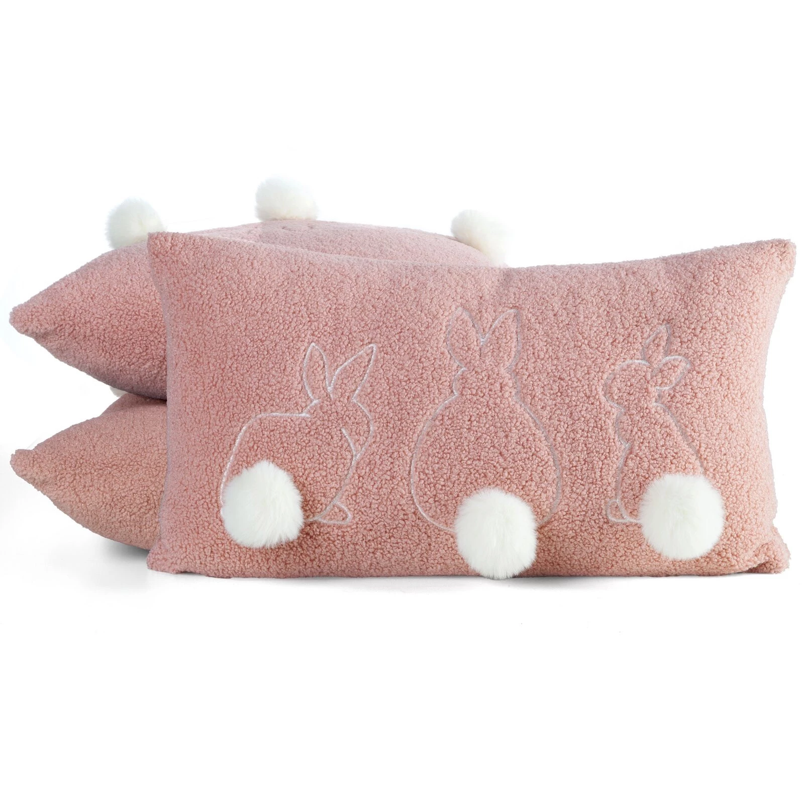 - Wielkanocna poszewka dekoracyjna imitująca buklę z ozdobnymi pomponami szerokość: 30 cm, długość: 50 cm, kolor: pudrowy, Gramatura: 220 GSM, Skład: 100% poliester