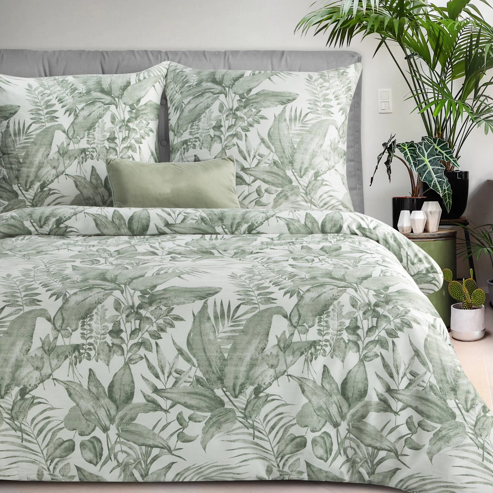- Komplet pościeli z satyny bawełnianej z nadrukiem szerokość: 140 cm, długość: 200 cm, kolor: miętowy, Gramatura: 115 GSM, Skład: satyna, 100% bawełna