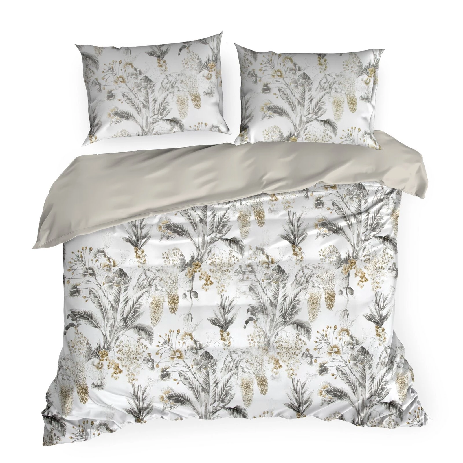 - Komplet pościeli z satyny bawełnianej z nadrukiem szerokość: 140 cm, długość: 200 cm, kolor: biały, Gramatura: 115 GSM, Skład: satyna, 100% bawełna