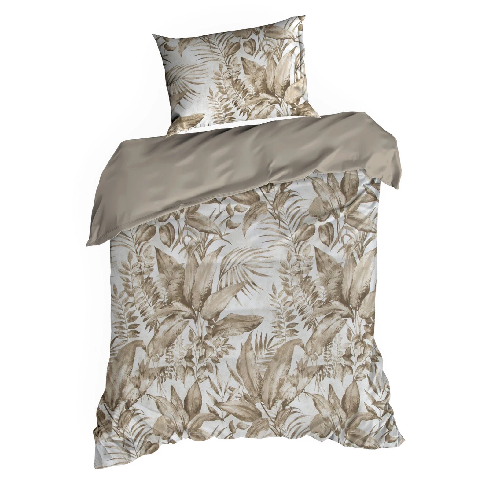 - Komplet pościeli z satyny bawełnianej z nadrukiem szerokość: 220 cm, długość: 200 cm, kolor: beżowy, Gramatura: 115 GSM, Skład: satyna, 100% bawełna