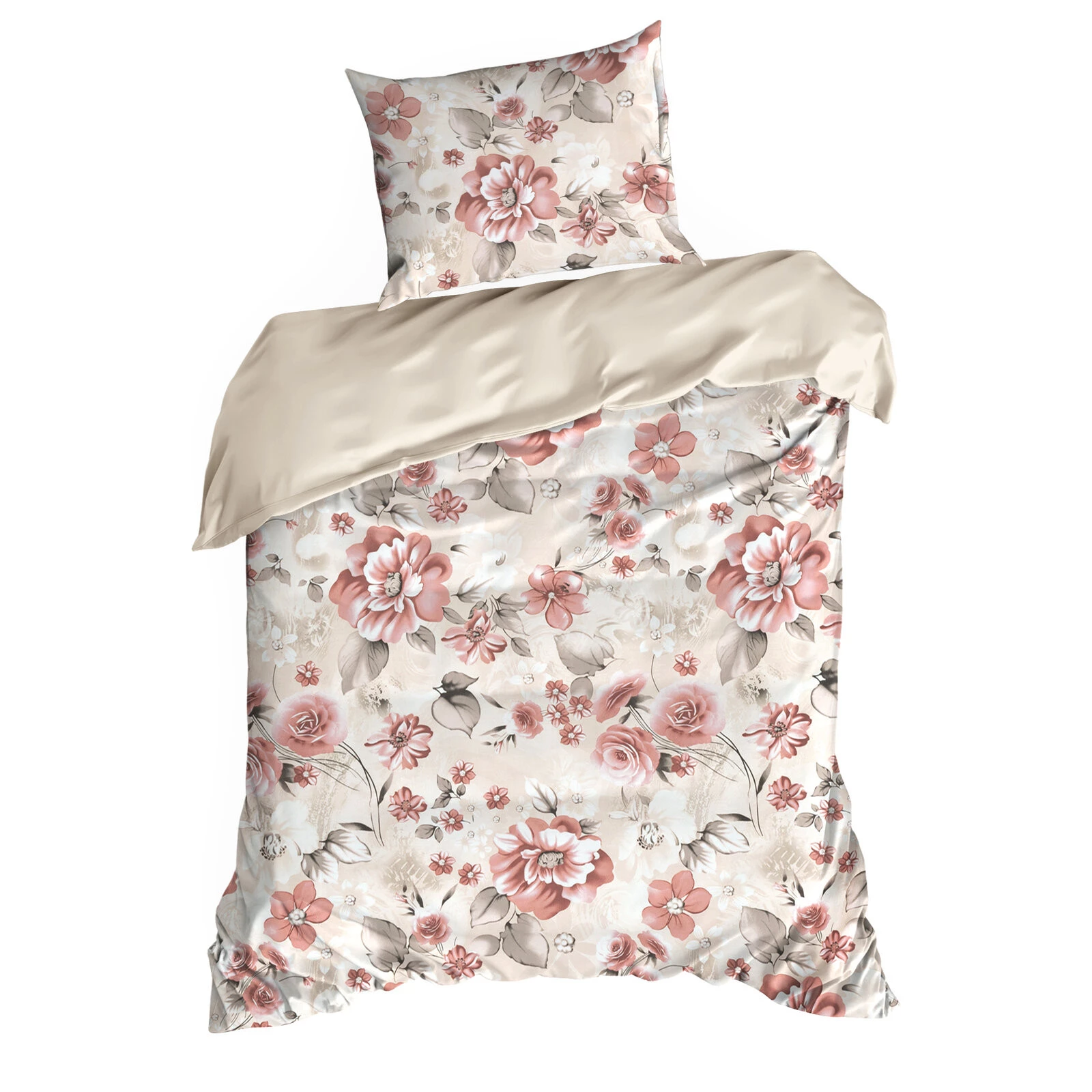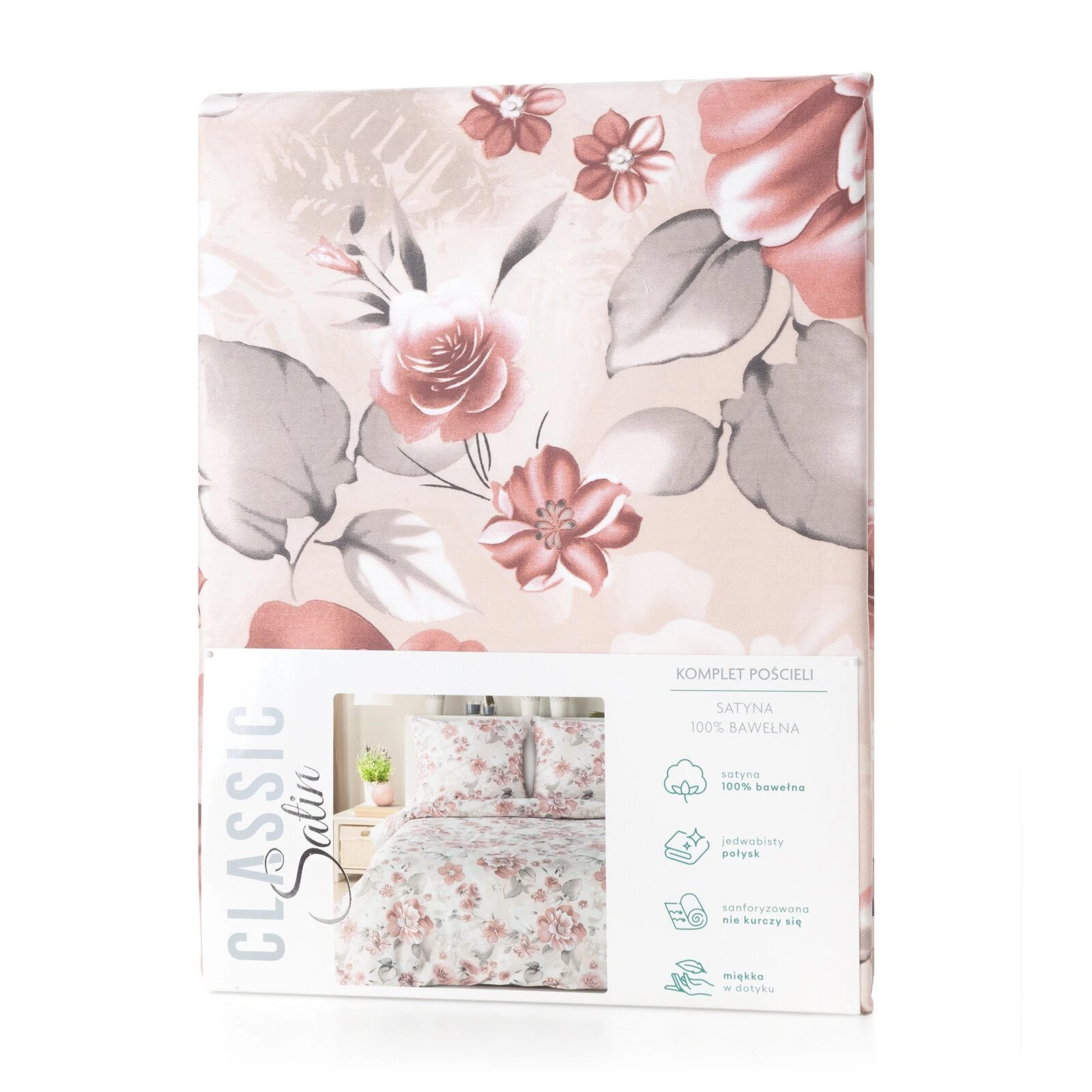 - Komplet pościeli z satyny bawełnianej z nadrukiem szerokość: 140 cm, długość: 200 cm, kolor: pudrowy róż, Gramatura: 115 GSM, Skład: satyna, 100% bawełna