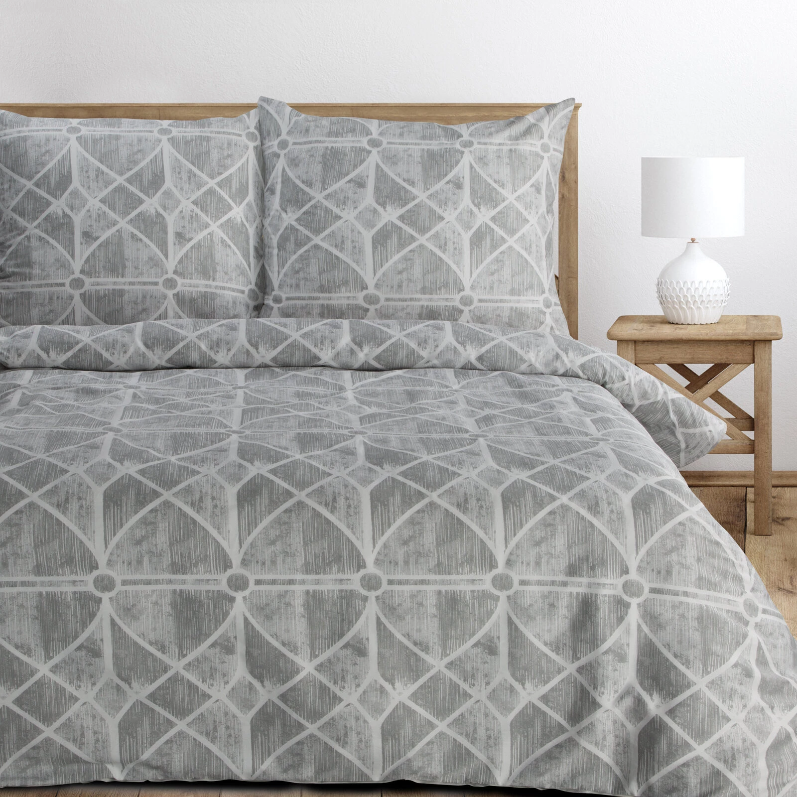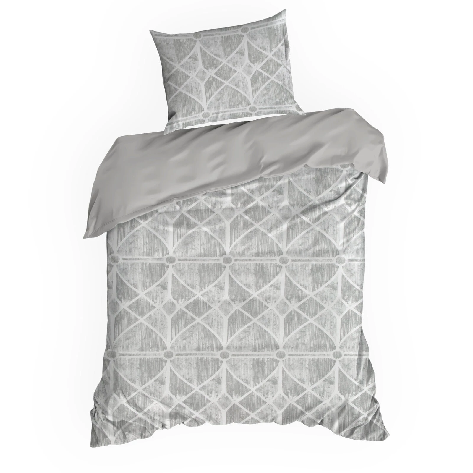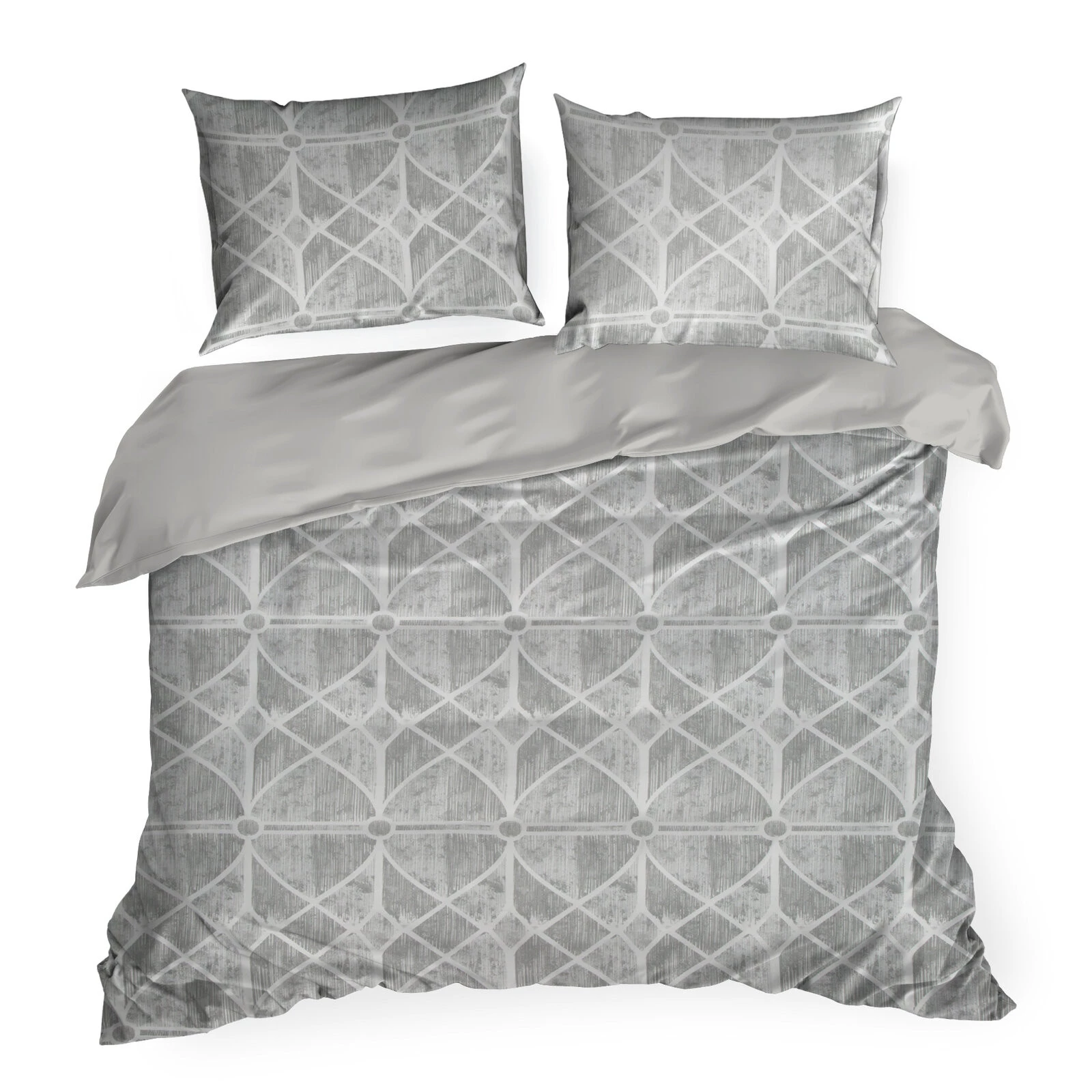 - Komplet pościeli z satyny bawełnianej z nadrukiem szerokość: 220 cm, długość: 200 cm, kolor: szary, Gramatura: 115 GSM, Skład: satyna, 100% bawełna