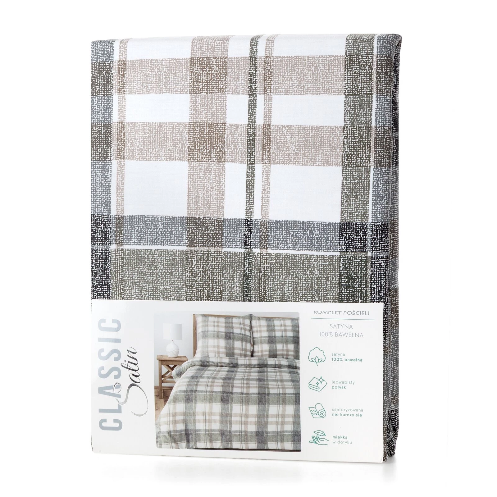 - Komplet pościeli z satyny bawełnianej z nadrukiem szerokość: 220 cm, długość: 200 cm, kolor: szary, Gramatura: 115 GSM, Skład: satyna, 100% bawełna