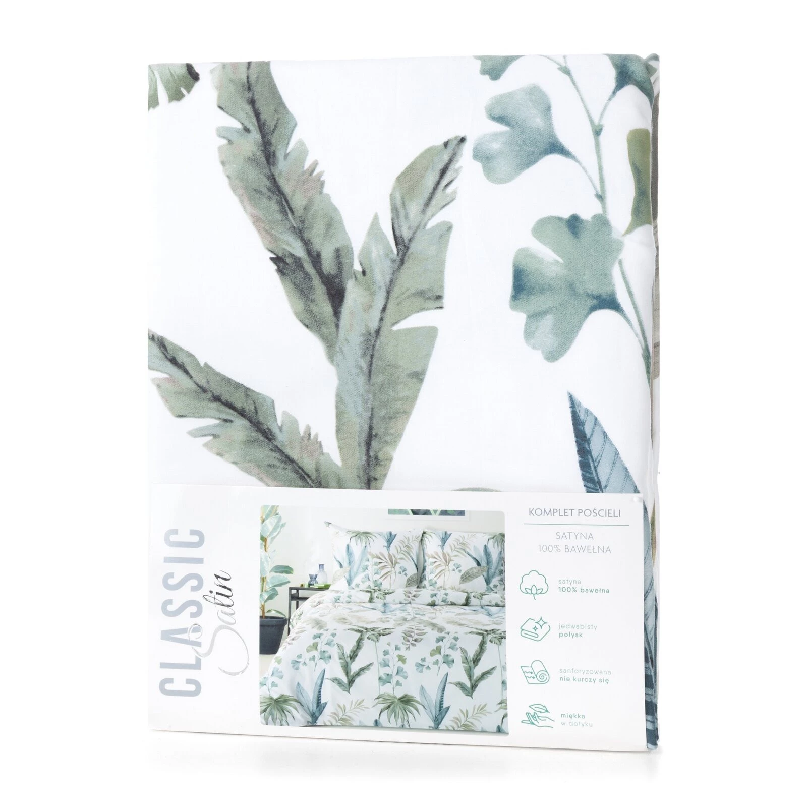 - Komplet pościeli z satyny bawełnianej z nadrukiem szerokość: 220 cm, długość: 200 cm, kolor: biały, Gramatura: 115 GSM, Skład: satyna, 100% bawełna