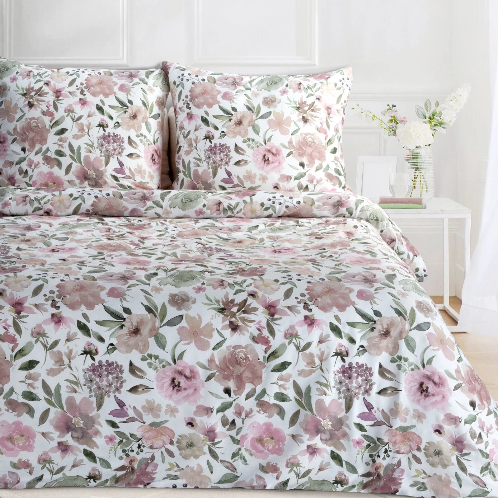 - Komplet pościeli z satyny bawełnianej z nadrukiem szerokość: 160 cm, długość: 200 cm, kolor: biały, Gramatura: 115 GSM, Skład: satyna, 100% bawełna