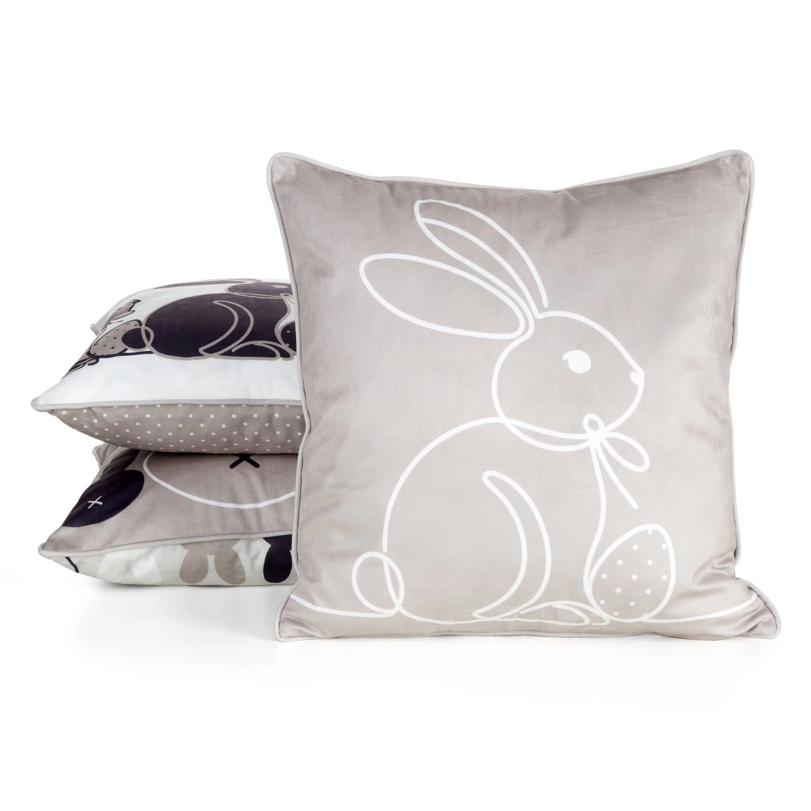 - Poszewka welwetowa z ozdobnym nadrukiem wielkanocnym szerokość: 45 cm, długość: 45 cm, kolor: beżowy, Gramatura: 200 GSM, Skład: 100% poliester