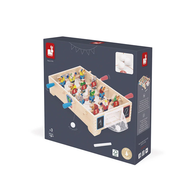 Janod Gra zręcznościowa drewniana Mini hokej Applepop 3+