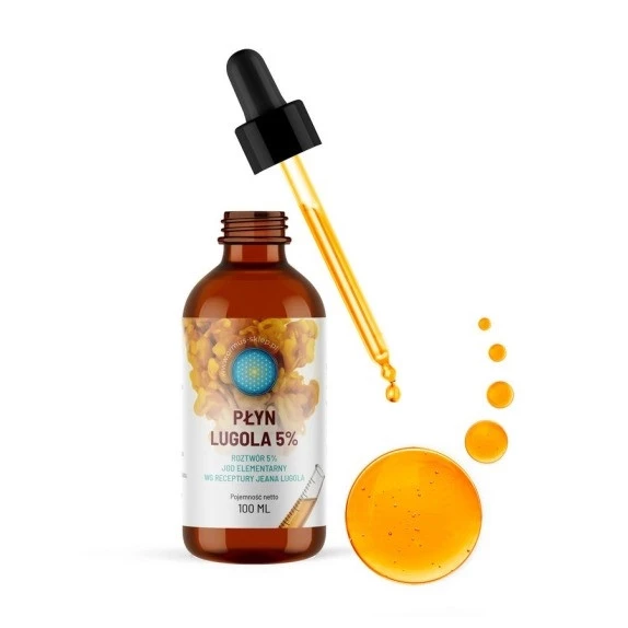- Płyn Lugola 5% marki I Love Herbs to wysokiej jakości roztwór wodny jodu i jodku potasu, stosowany w laboratoriach chemicznych, biologicznych i edukacyjnych. Idealny do wykrywania skrobi, analiz mikroskopowych i eksperymentów dydaktycznych.
