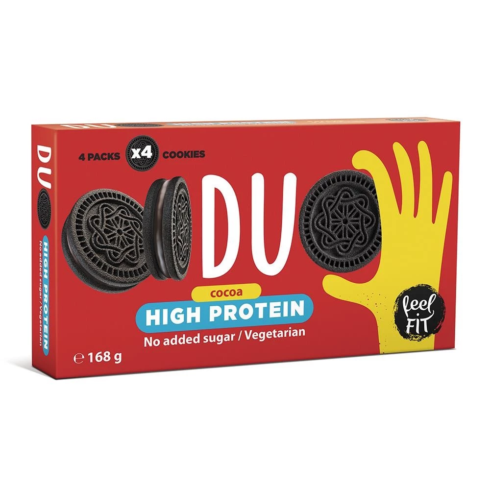 Ciastka Feel FIT DUO Protein to idealna przekąska na każdą porę dnia, nie tylko po treningu! Zawierają 22g białka w porcji co czyni je idealną przekąską, która doda Twojemu organizmowi zdrowego zastrzyku energii. Kiedy poczujesz, że poziom Twojej energii spada, wypróbuj nasze ciastka i poczuj, jak energia natychmiast wraca.