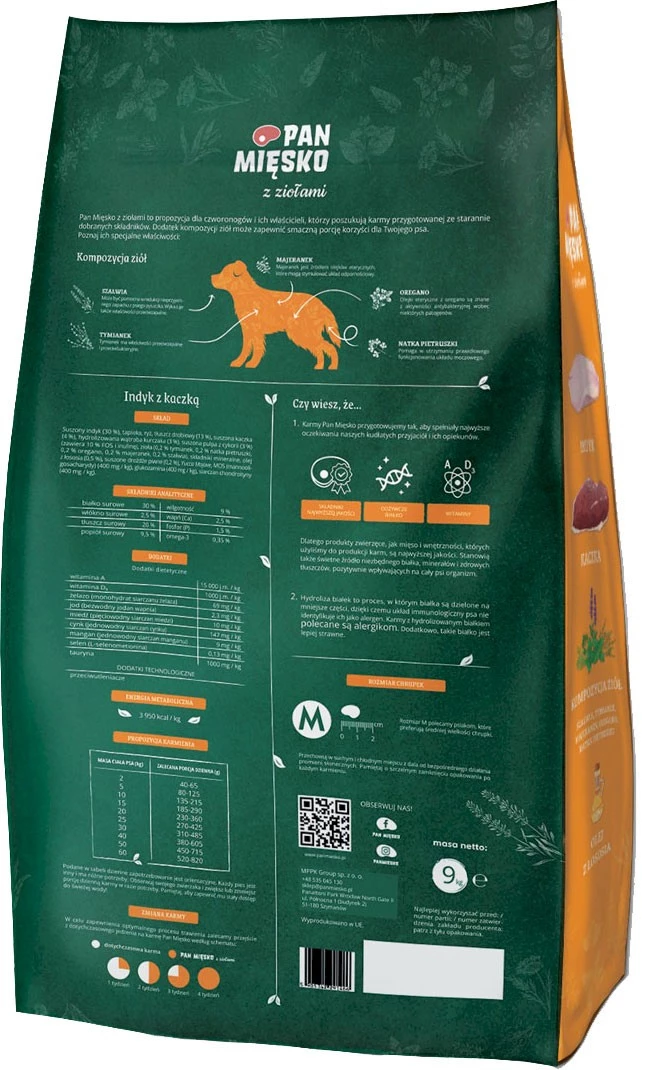 Pan Mięsko z Ziołami Indyk z kaczką M - sucha karma dla psa - 9kg