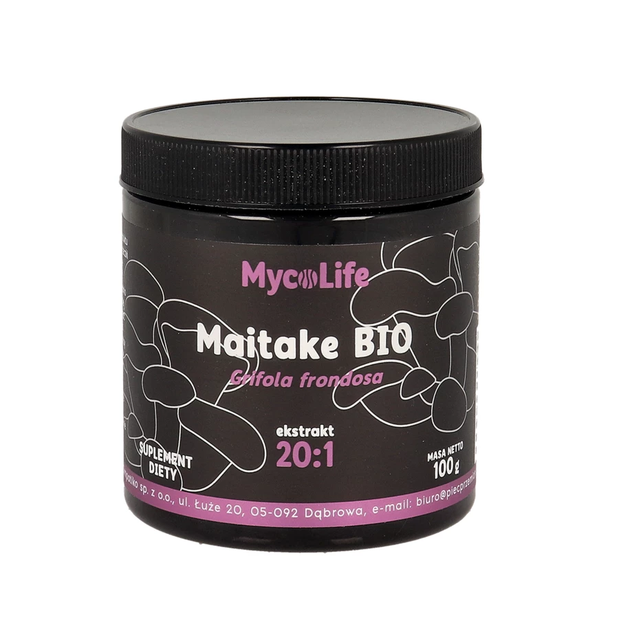 Wysokiej jakości suplement diety w proszku, zawierający ekologiczny ekstrakt z grzybów Maitake (Grifola frondosa), standaryzowany na min. 40% polisacharydów. Produkt pozyskiwany jest w procesie ekstrakcji 20:1 i pochodzi z upraw w Chinach.