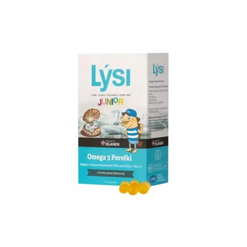 Lysi Junior Omega 3 Perełki 60 kaps. smaku gumy balonowej