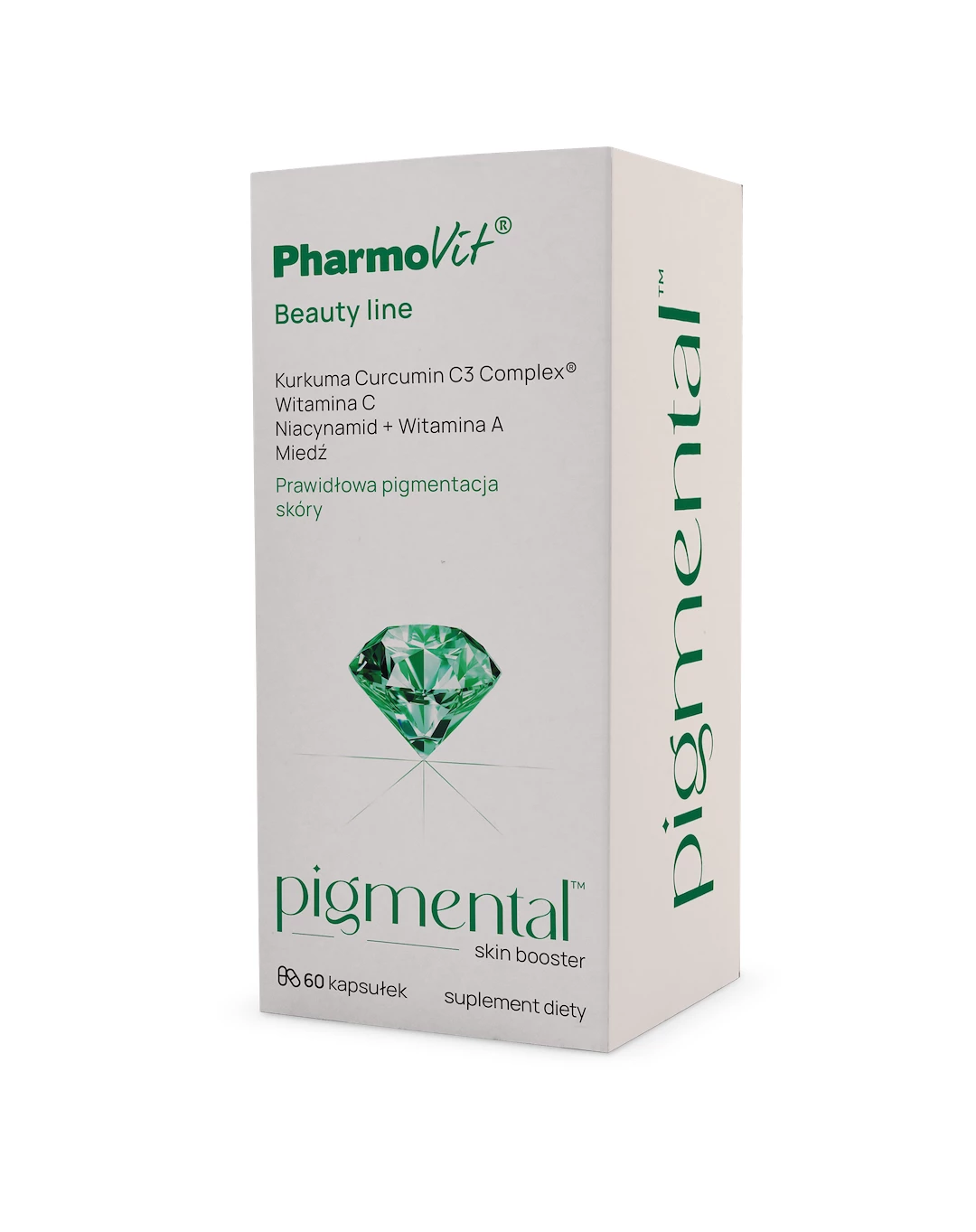 Pigmental™ to suplement diety w kapsułkach, łączący ekstrakty roślinne, witaminy i minerały, które wspomagają utrzymanie prawidłowej pigmentacji skóry oraz chronią ją przed stresem oksydacyjnym i skutkami promieniowania UV.
