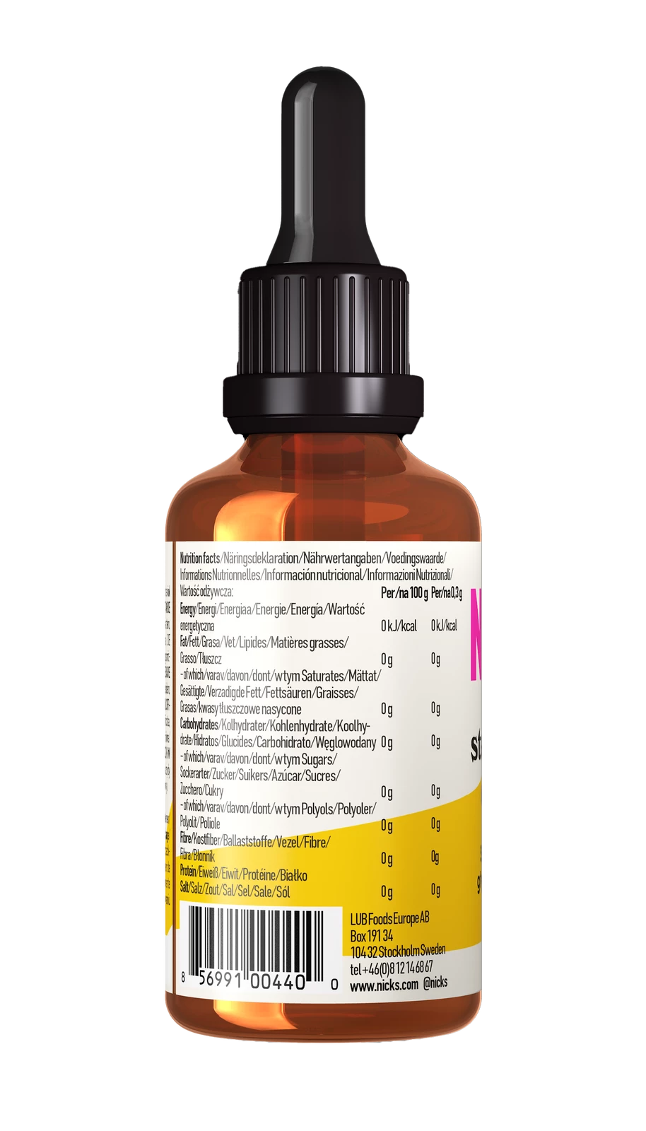 - Nick's Stevia Drops Caramel to naturalny słodzik w płynie o intensywnym smaku i zapachu karmelu – bez dodatku cukru i bez kalorii. Doskonały wybór dla osób, które chcą urozmaicić swoją dietę słodkim akcentem, nie rezygnując ze zdrowego stylu życia.