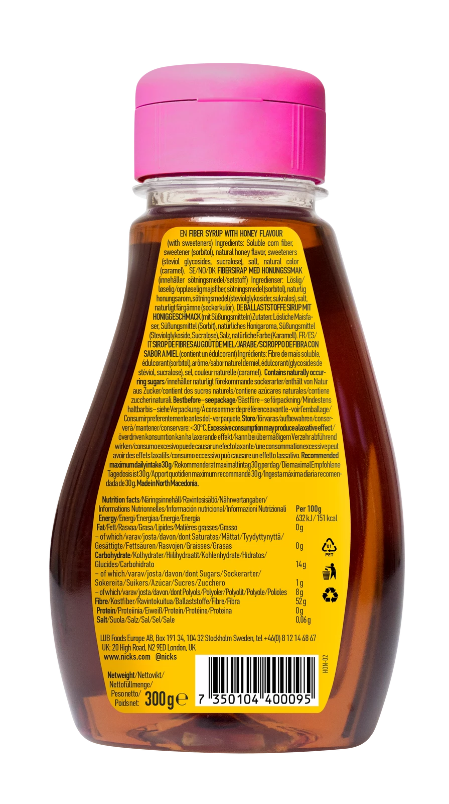 Nick's Fiber Syrup to niskokaloryczny, płynny syrop słodzący bez dodatku cukru. Dzięki wysokiej zawartości błonnika i naturalnym słodzikom jest świetną alternatywą dla tradycyjnych syropów – idealny do słodzenia napojów, deserów czy wypieków.