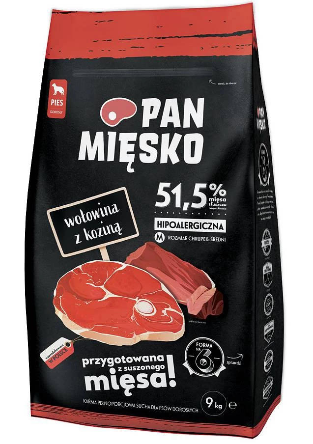 Pan Mięsko Wołowina z koziną M - sucha karma dla psa - 9kg