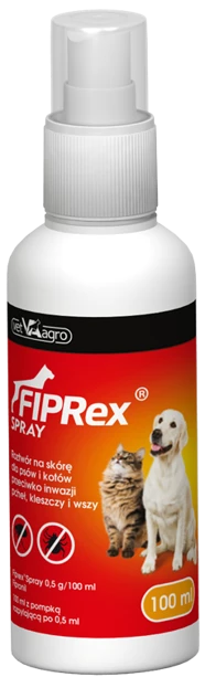- Fiprex® - roztwór do nakrapiania przeznaczony do zwalczanie kleszczy, pcheł i wszy u psów i kotów.